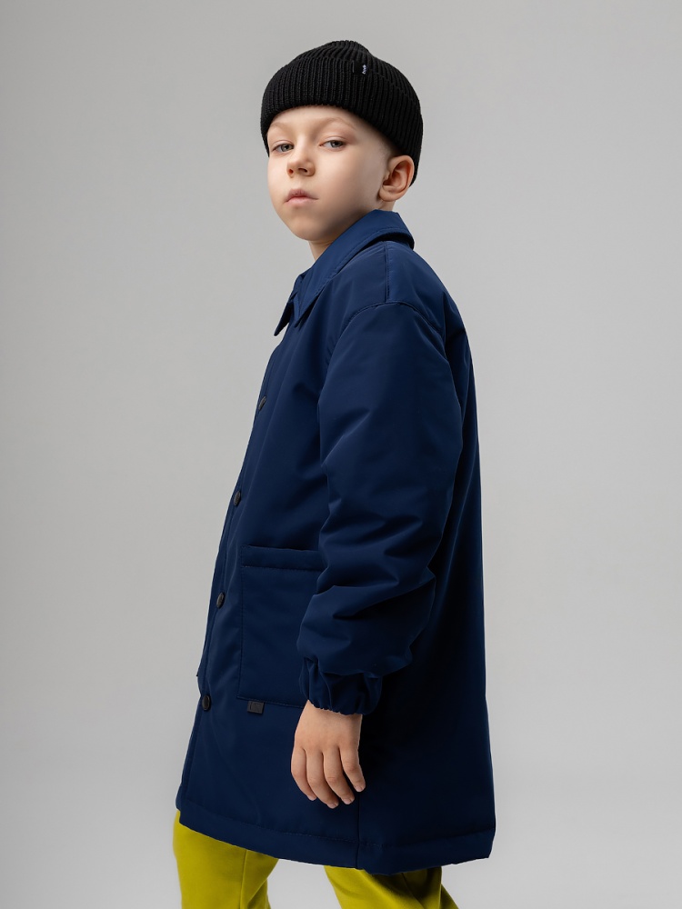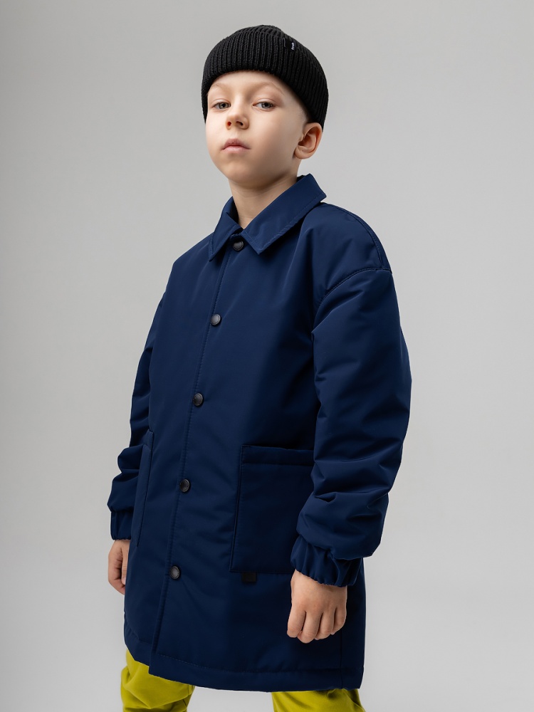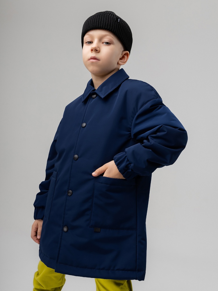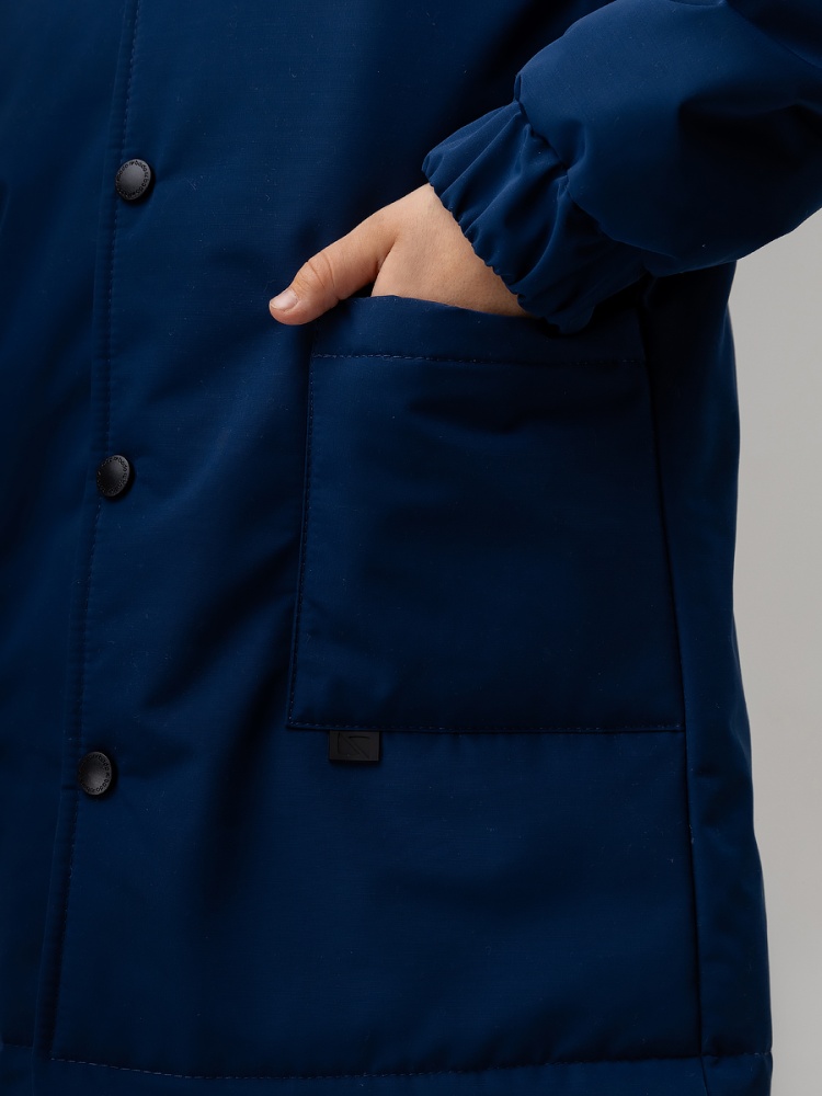 Куртка для детей дошкольного возраста. Из плотного курточного материала Fitsystem , с матовым эффектом, влагозащитная, воздухообменная и ветрозащитная. Внутри изделия легкий гипоаллергенный современный утеплитель Hetta micro 100 г/кв.м, подкладочный материал кулирная гладь 100% хлопок. Температурный режим от +15 до -5, в зависимости от индивидуального теплообмена ребенка. Куртка прямого силуэта, с центральной бортовой застёжкой на кнопки. Куртка со спущенным плечом и втачными рукавами с притачной манжетой с внутренней резинкой. Воротник отложной со стойкой. На полочке расположены накладные карманы. Низ прямой.