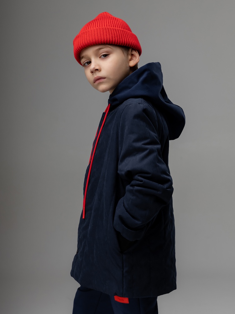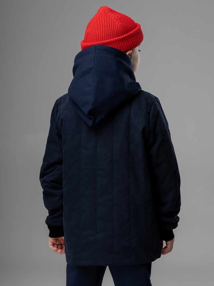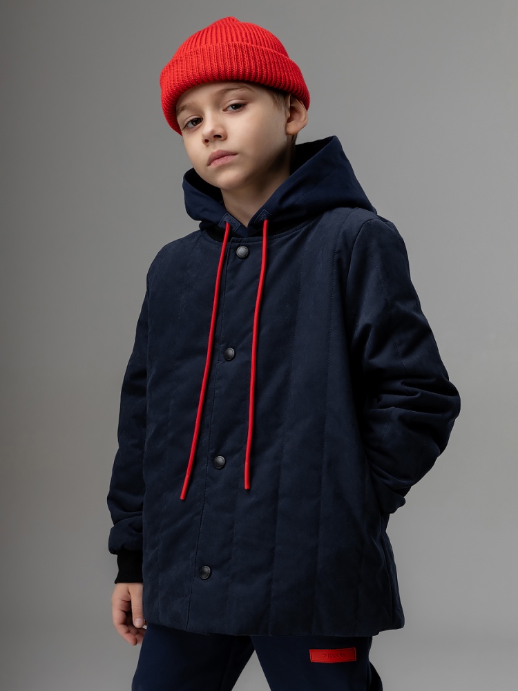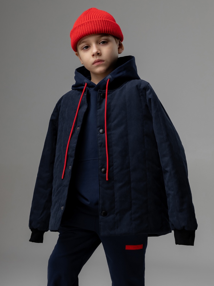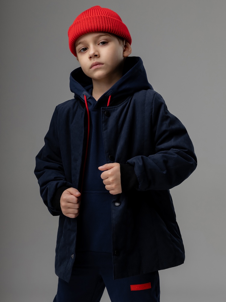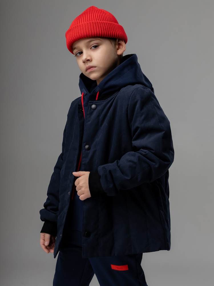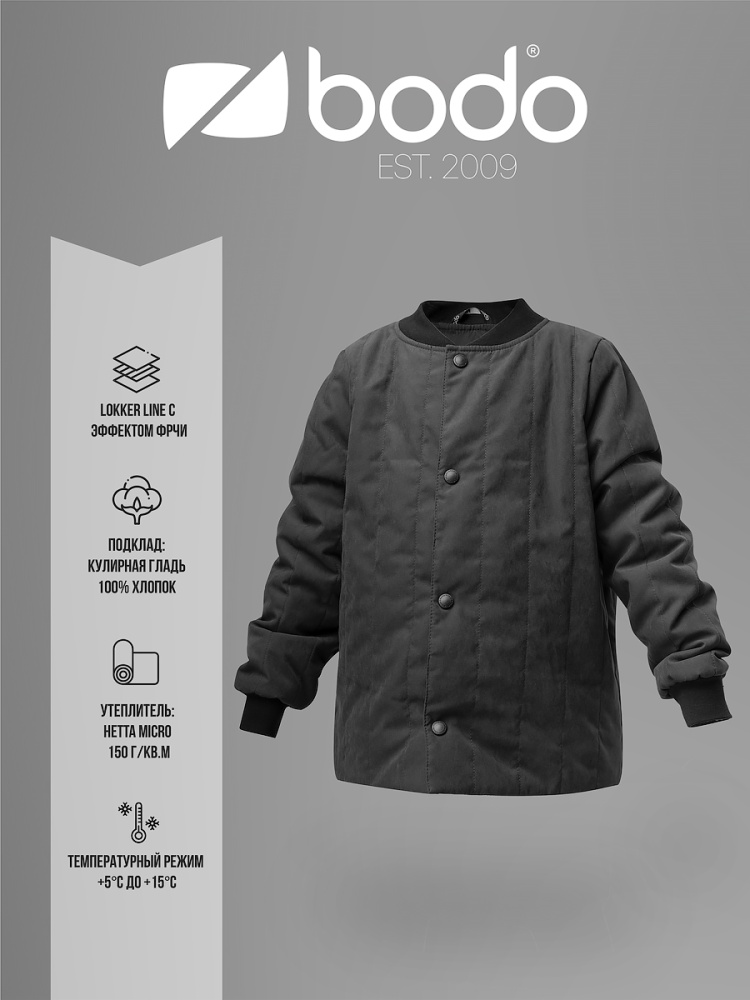 Куртка для детей дошкольного возраста из плащевой ткани Lokker line с эффектом фрчи. Куртка (фуфайка) утеплённая на подкладке, прямого силуэта, с центральной бортовой застёжкой на кнопки. Куртка с втачными рукавами с притачной манжетой из рибаны и воротником. Карманы расположены в боковых швах. Низ прямой. Внутри изделия легкий гипоаллергенный современный утеплитель Hetta micro, подкладочный материал кулирная гладь 100% хлопок. Температурный режим от +15 до +5, в зависимости от индивидуального теплообмена ребенка.