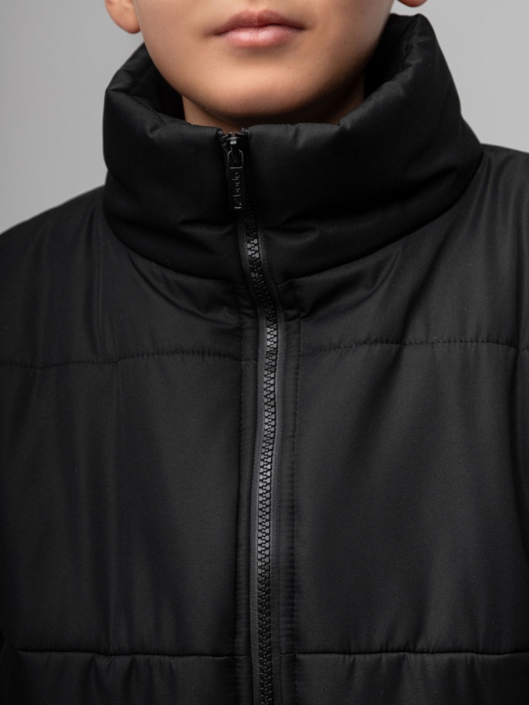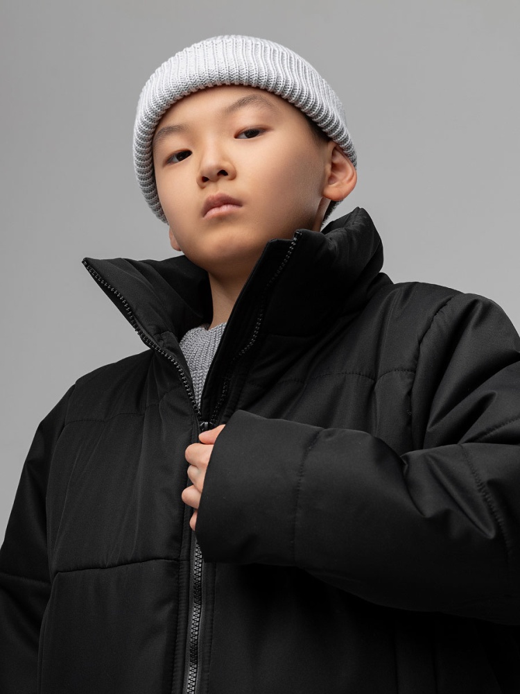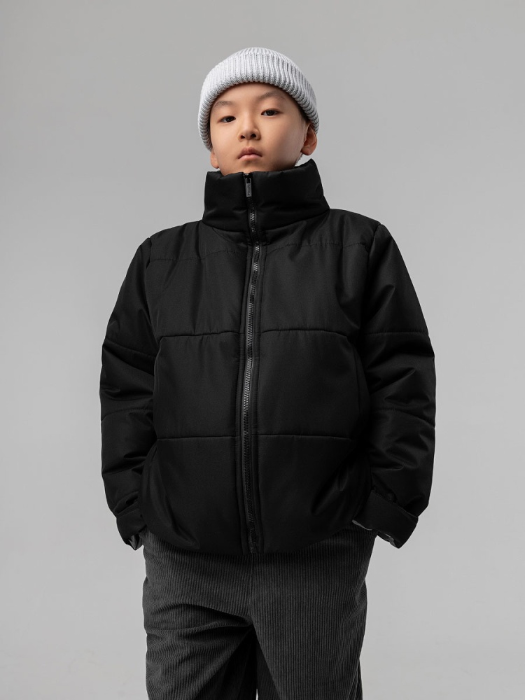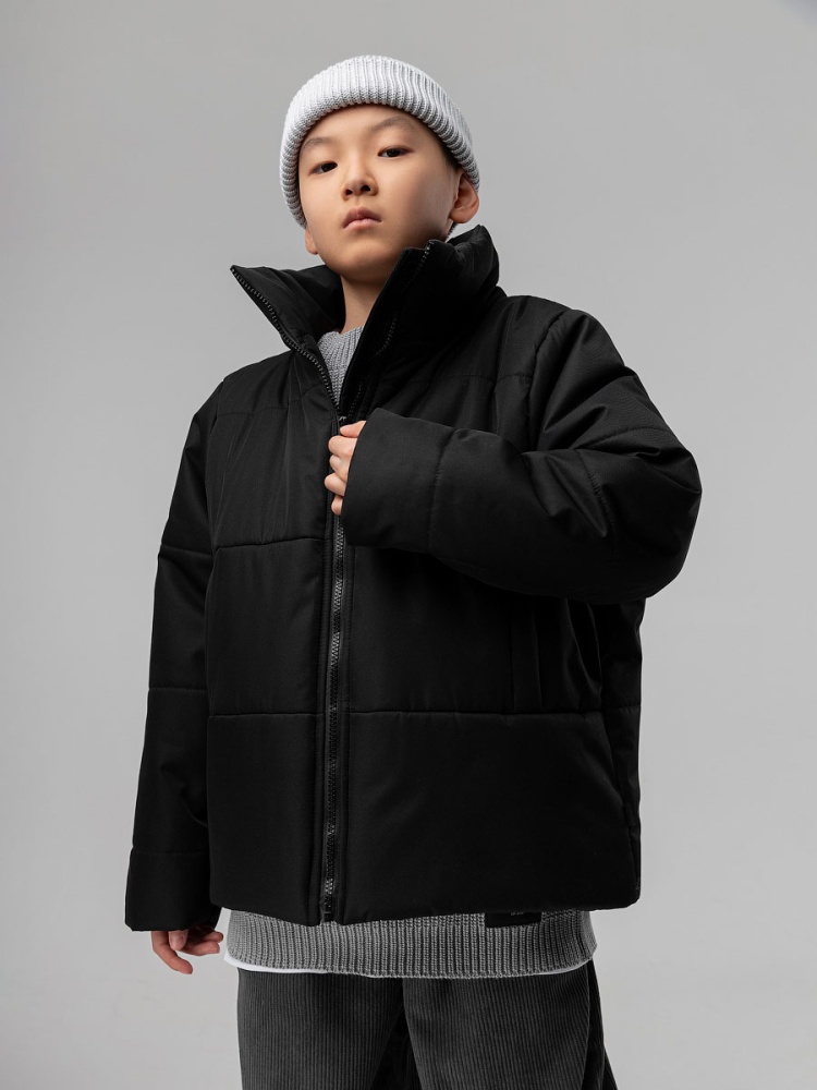 Куртка для детей школьного возраста. Куртка с подкладкой, прямого силуэта, с втачными рукавами, с воротником стойка. Куртка с центральной застёжкой на тесьму - «молния». На полочках располагаются карманы с листочкой. Материал верха: курточная ткань 100% полиэстер, утеплитель Hetta Filt S2 150 г/кв.м, подкладочный материал кулирная гладь хлопок 100% Температурный режим от -5 до +10, в зависимости от индивидуального теплообмена ребенка.