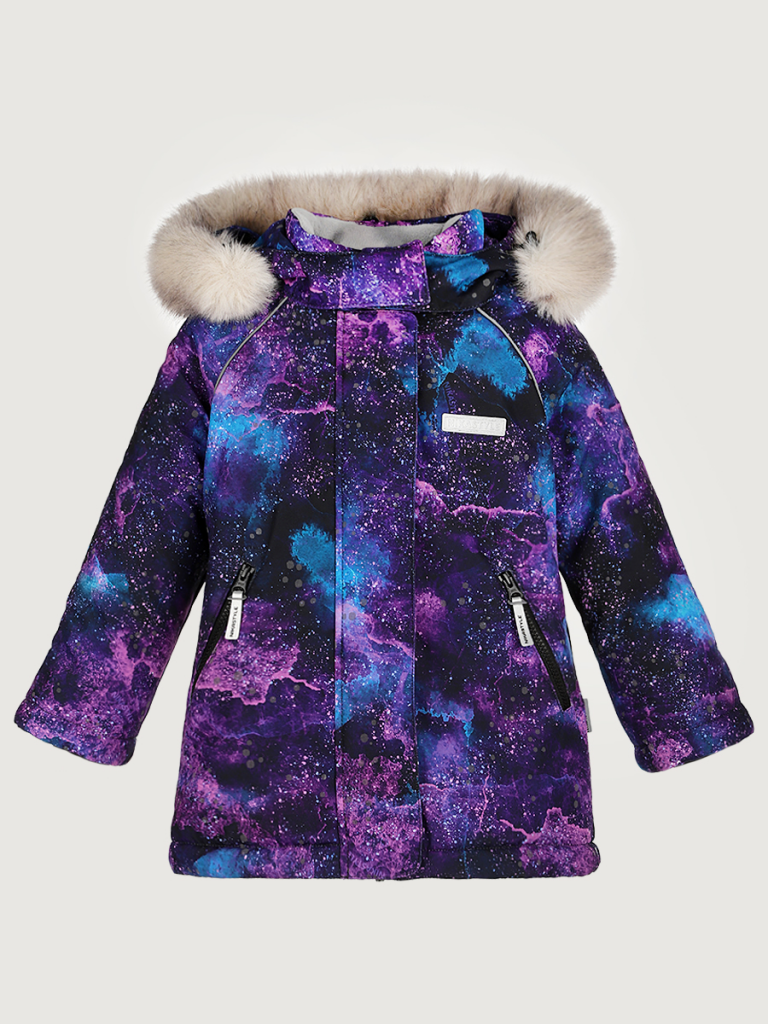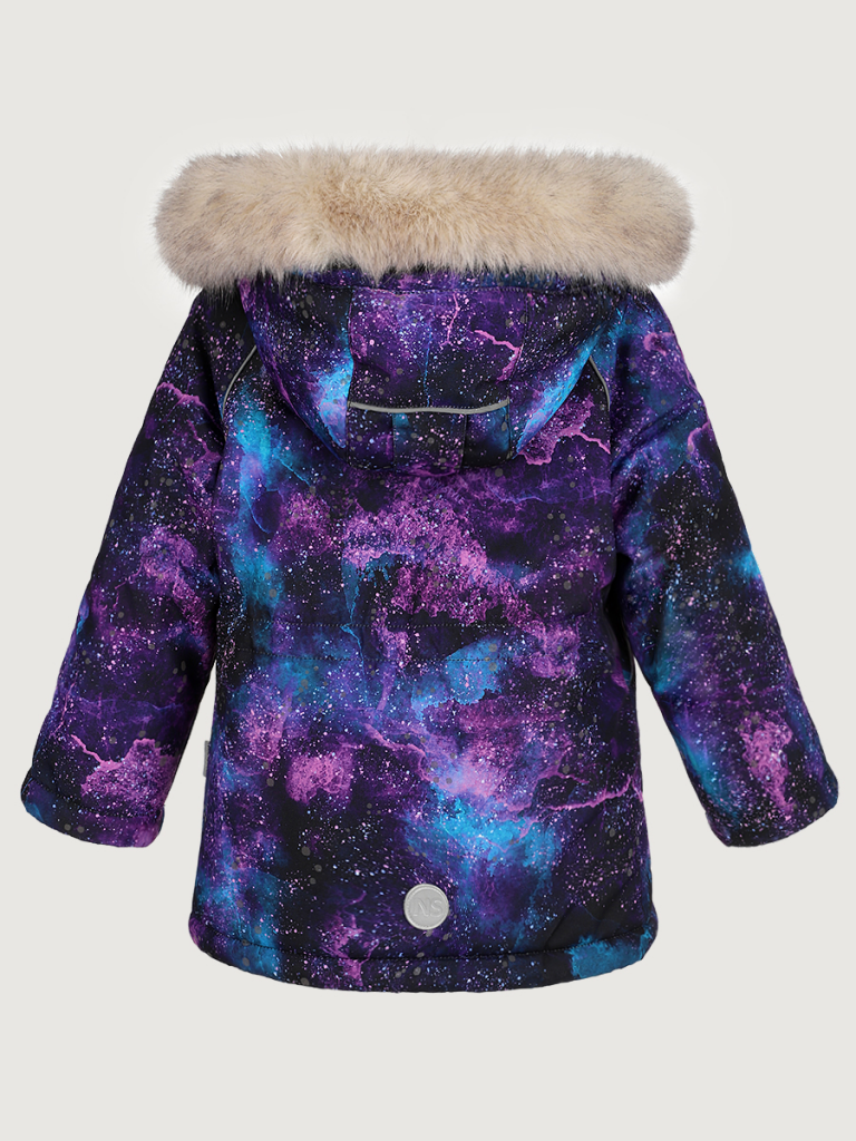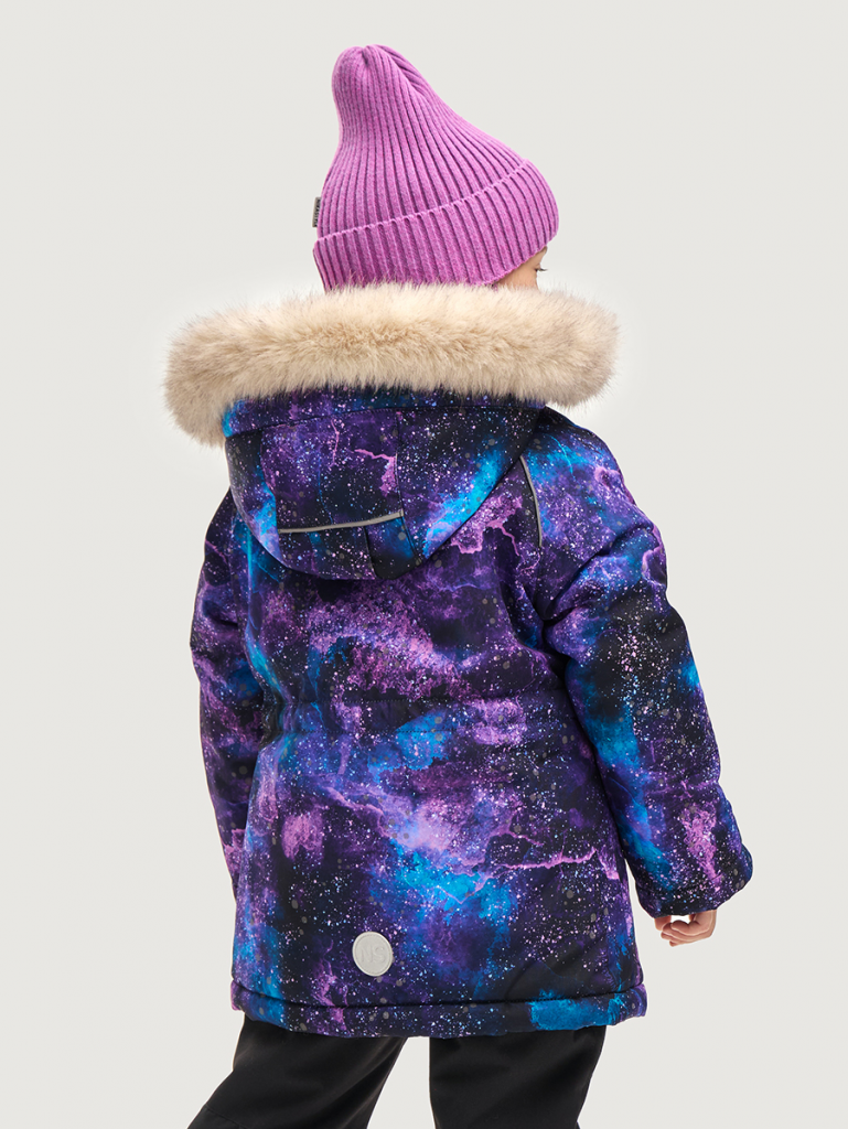 Куртка ВСЕЛЕННАЯ из мембранной ткани 5000/5000 с водо- грязеотталкивающей технологией TEFLON. Мембранная ткань это непродуваемый и водонепроницаемый материал, который надежно защищает от ветра и влаги. Благодаря дышащим свойствам мембраны ребенку будет комфортно в любую погоду и он не вспотеет. Дополнительно на ткань нанесен светоотражающий принт. Ткань обработана снаружи экологически чистым протектором TEFLON для защиты от воды и грязи.