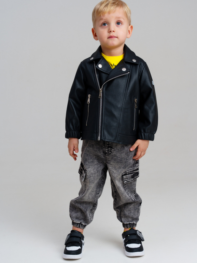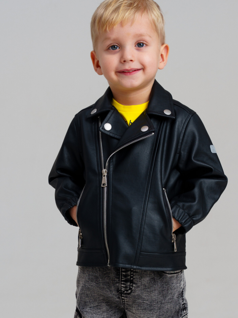 > Куртка детская кожаная для мальчиков черный