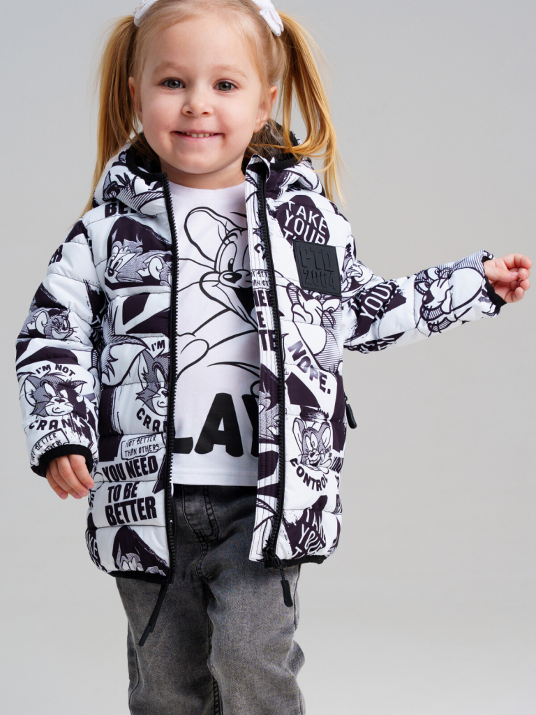 > Куртка детская текстильная с полиуретановым покрытием для девочек белый,черный
