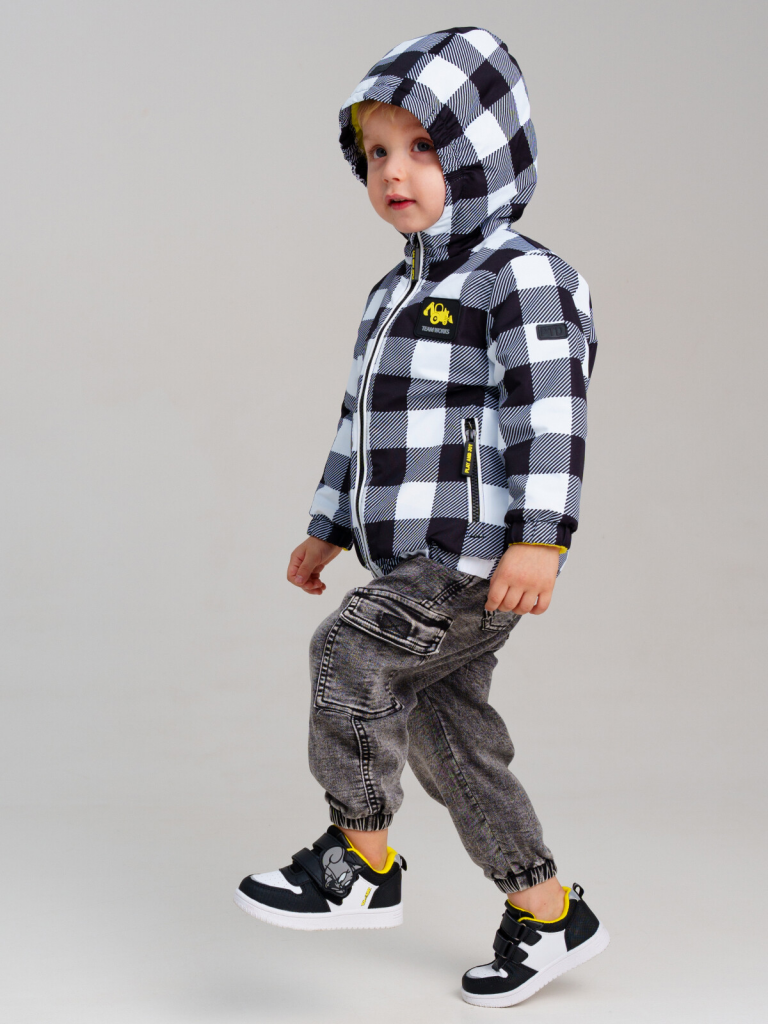 > Куртка детская текстильная с полиуретановым покрытием для мальчиков черный,белый