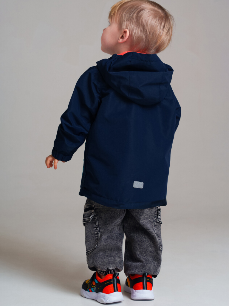 > Куртка детская текстильная с полиуретановым покрытием для мальчиков (ветровка) тёмно-синий,оранжевый