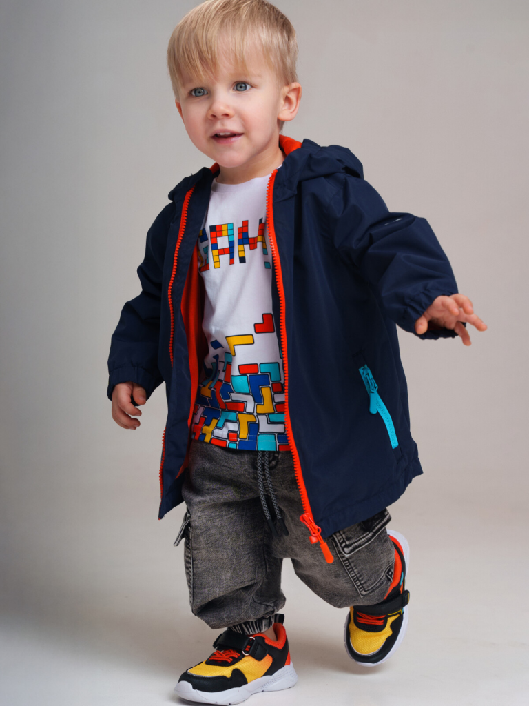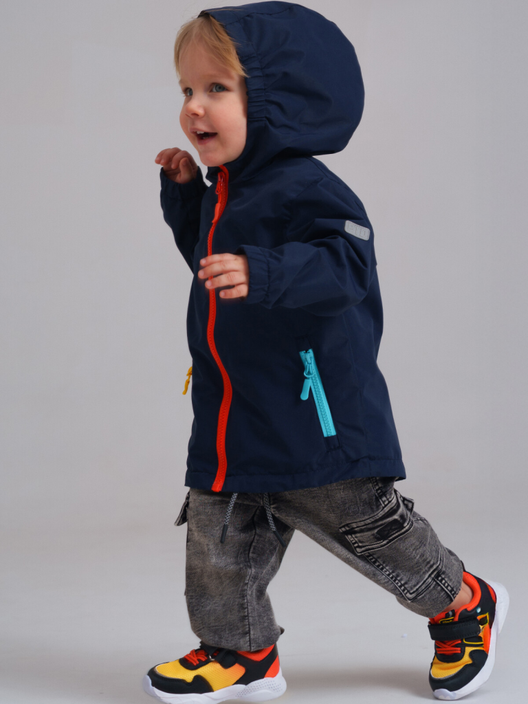 Ветровка детская с мембраной 5000*5000 на трикотажной подкладке для мальчика. Температурный режим до +10°С*. Линия температурного режима X-LIGHT. Идеально подходит для весны и теплой осени. Внутренняя ветрозащитная планка. Манжеты и низ изделия на резинке. Два боковых кармана на молнии. Внутренний карман на липучке. Капюшон несъемный, на резинке. *Пожалуйста, обратите внимание, что указанный температурный режим является приблизительным и зависит от многих факторов, таких, как возраст, физическое состояние, уровень активности ребенка и количество слоев одежды. Время, проведенное на открытом воздухе, и погодные условия, такие как холодный ветер, могут повлиять на тепловые характеристики изделия. Убедитесь, что защищены от холода голова, руки и ноги.