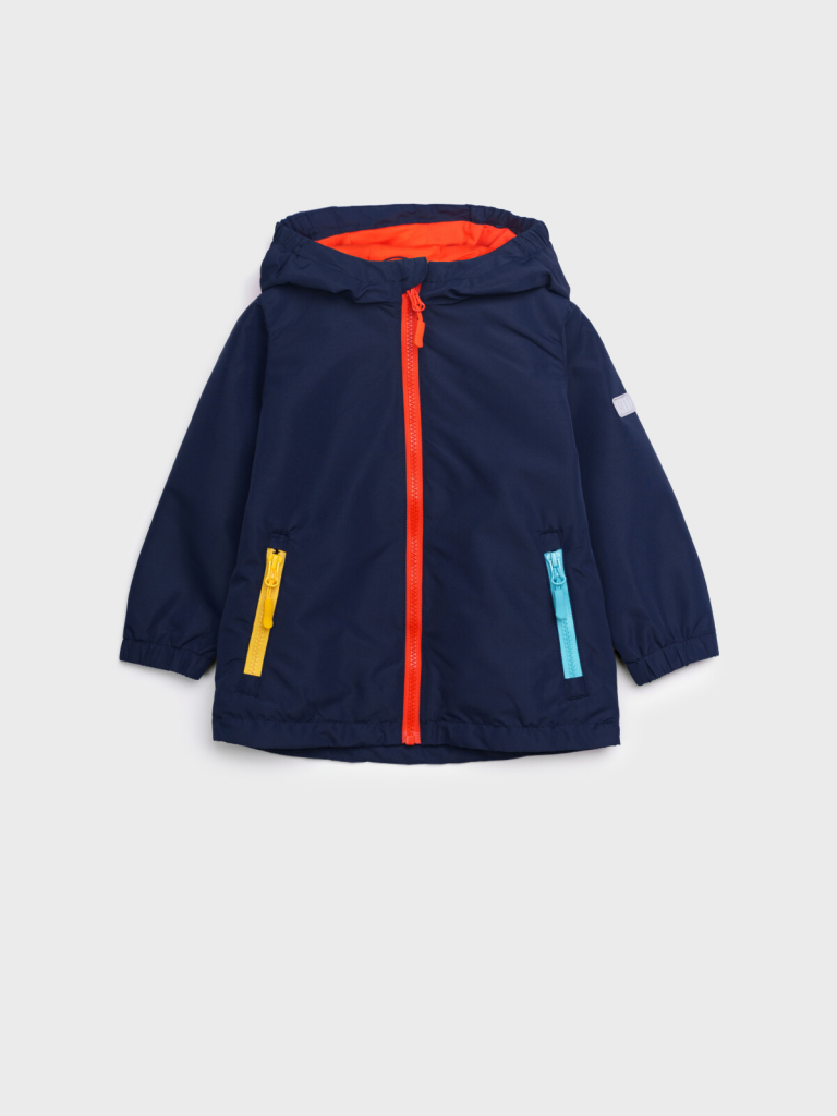 Куртка детская текстильная с полиуретановым покрытием для мальчиков (ветровка) тёмно-синий,оранжевый