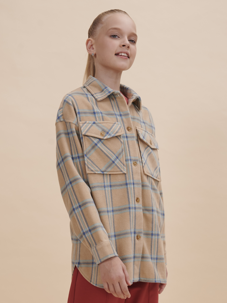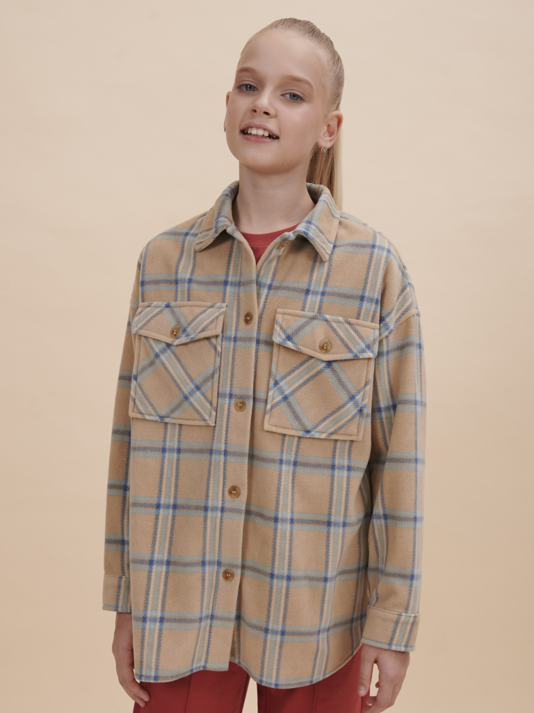 Флисовая рубашка для девочки. Объёмная рубашка с классическим отложным воротником и спущенным плечом подарит ребёнку комфорт и не будет стеснять его движений. Клетчатая рубашка оверсайз — актуальный модный тренд. Модель застёгивается на пуговицы по переду. По низу рукавов манжеты на пуговицах. По переду слева накладные карманы с клапанами для мелочей. Линия низа фигурная, спинка слегка длиннее переда. Изделие лаконичного дизайна, без принта. Рубашка неприхотлива в уходе. Флис тёплый, мягкий, лёгкий, просто стирается и быстро сохнет, не выгорает и не скатывается, одежда из него надолго сохраняет прекрасную форму. Рубашка оверсайз в клетку выполнена в трендовых базовых цветех: черном, бежевом, белом. Она легко сочетается с различными брюками, джинсами. Размерная линейка: 1 (86): 2 (92): 3 (98): 4 (104): 5 (110): 6 (116): 7 (122): 8 (128): 9 (134): 10 (140): 11 (146). Идеальная рубашка в клетку для детей дошкольного и младшего школьного возраста, а также подростка. Рубашка утеплённая подходит для круглогодичной носки: летом, осенью, зимой, весной и демисезон. Её можно носить в детский сад, на прогулки, отдых, а также дома. Она может заменить ветровку в начале осени или конце весны, а зимой послужит тёплым средним слоем одежды. Выбирайте нужный размер по таблице размеров на фото. Цвет товара на экране вашего устройства может отличаться от цвета изделия вживую.