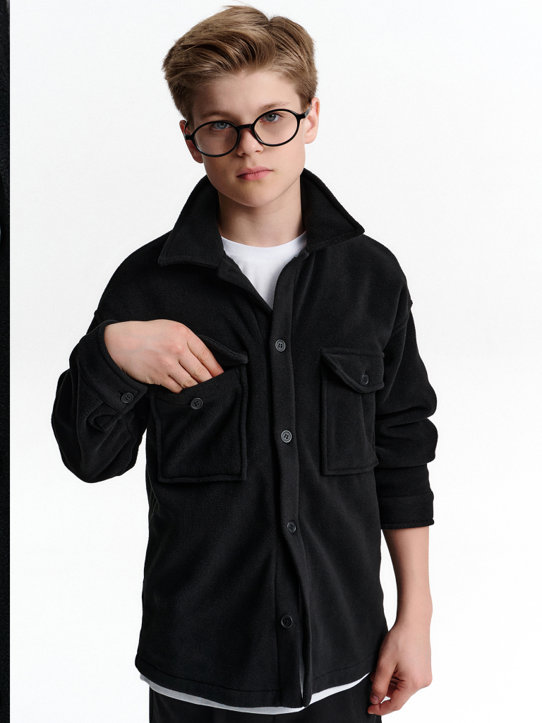 Флисовая рубашка для мальчика. Объёмная рубашка с классическим отложным воротником и спущенным плечом подарит ребёнку комфорт и станет стильным дополнением гардероба. Клетчатая рубашка оверсайз — актуальный модный тренд. Модель застёгивается на пуговицы по переду. По низу рукавов манжеты на пуговицах. По переду слева накладной карман для мелочей. Линия низа фигурная, спинка слегка длиннее переда. Изделие лаконичного дизайна, без принта. Рубашка неприхотлива в уходе. Флис тёплый, мягкий, лёгкий, просто стирается и быстро сохнет, не выгорает и не скатывается, одежда из него надолго сохраняет прекрасную форму. Рубашка оверсайз в клетку выполнена в универсальной расцветке — легко сочетается с различными брюками, джинсами. Идеальная рубашка в клетку для мальчика дошкольного и младшего школьного возраста, а также подростка. Рубашка утеплённая заменит ветровку в прохладную погоду, а зимой послужит тёплым средним слоем одежды. Её можно носить в детский сад, на прогулки, отдых, а также дома. Помните о правильном уходе за изделием: рекомендуется стирать при температуре не выше 30 °C, без предварительного замачивания, с изнанки. Это поможет сохранить качество и цвет рубашки на длительное время.