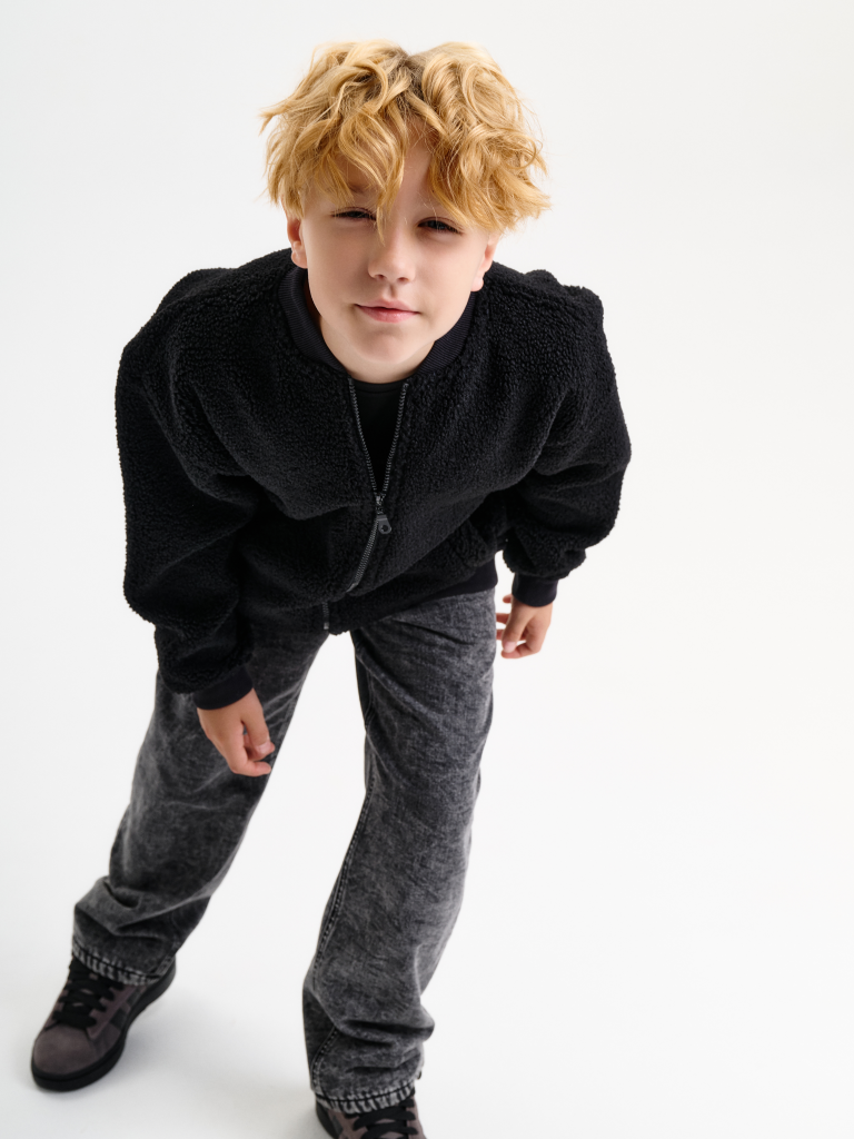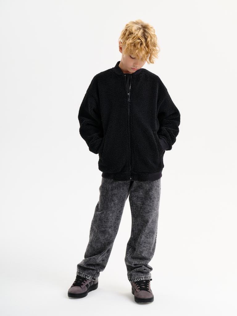 Трикотажный бомбер из бербер-флиса. Такой флис еще называют тедди, чебурашка, барашек. Мягкая кофта оверсайз застегивается на молнию. По переду два глубоких прорезных кармана. Воротник, манжеты рукавов и манжет низа выполнены из декоративной рибаны. Плюшевая толстовка из искусственного меха утеплена флисовым подкладом, благодаря чему ее можно носить в прохладную погоду весной и осенью. Универсальные цвета подойдут для повседневной носки в школу и на прогулку. Широкая размерная линейка подойдет как малышам так и подросткам.