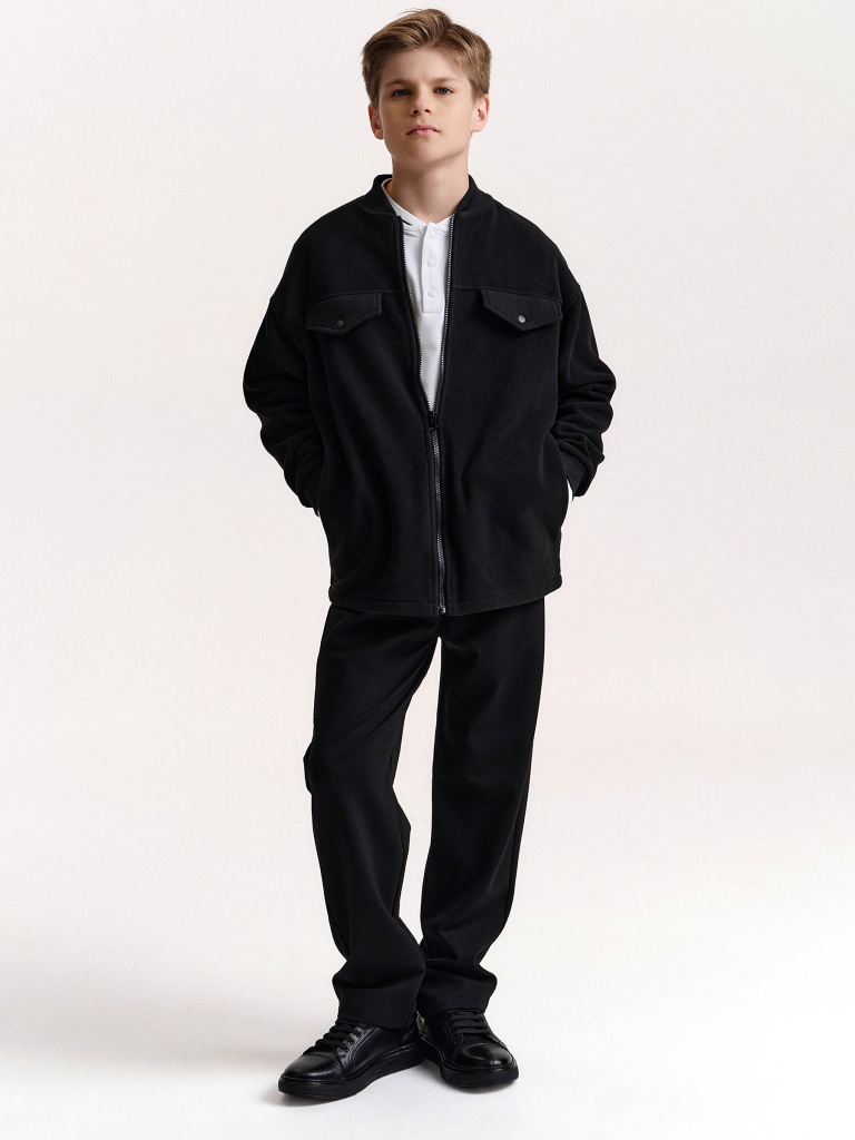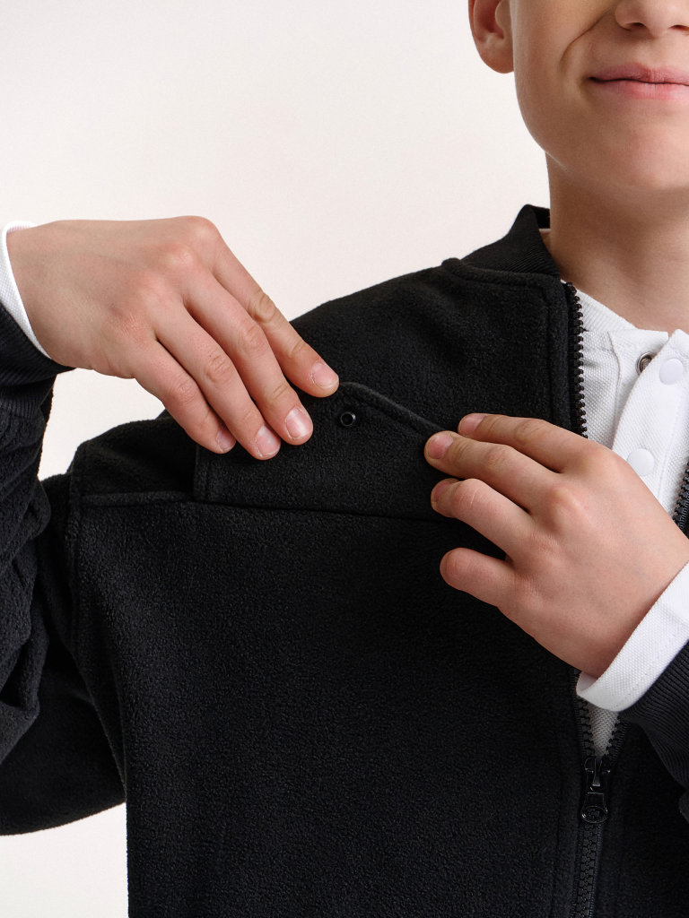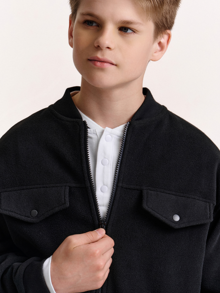 Удобная и тёплая курточка из флиса для мальчиков — идеальный выбор для школы и активных прогулок Этот бомбер выполнен из мягкого и тёплого флиса — материала, который отлично сохраняет тепло, но при этом хорошо пропускает воздух. Ребёнку будет комфортно и в прохладную погоду, и во время активных игр на улице. Крой куртки прямой, слегка суженный к низу — удобно сидит и не стесняет движений. Спереди — удобная застёжка на надёжную тракторную молнию, которую ребёнок легко застегнёт самостоятельно. Особенности модели: Воротник-стойка и манжеты из эластичной ткани (рибa), которые хорошо прилегают и защищают от ветра. По переду и спинке — аккуратные отделочные детали (кокетки), которые делают курточку стильной и аккуратной. Декоративные клапаны с пуговицами спереди добавляют интересный модный акцент. Практичные карманы в боковых швах — чтобы ребёнок мог носить мелочи или греть руки. Все швы аккуратно прошиты, что гарантирует прочность и долговечность вещи. Эта курточка из флиса — отличное решение для школьника: она тёплая, лёгкая, не сковывает движений и подходит для носки каждый день — в школу и на прогулку. Мама может быть уверена в качестве и удобстве, а ребёнок — в свободе и комфорте. Используйте таблицу размеров на фотографии, чтобы выбрать подходящий размер. Обратите внимание, что цвет товара на экране вашего устройства может отличаться от реального.