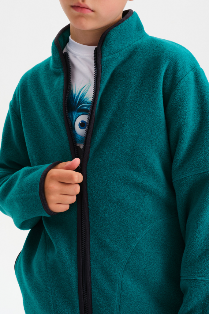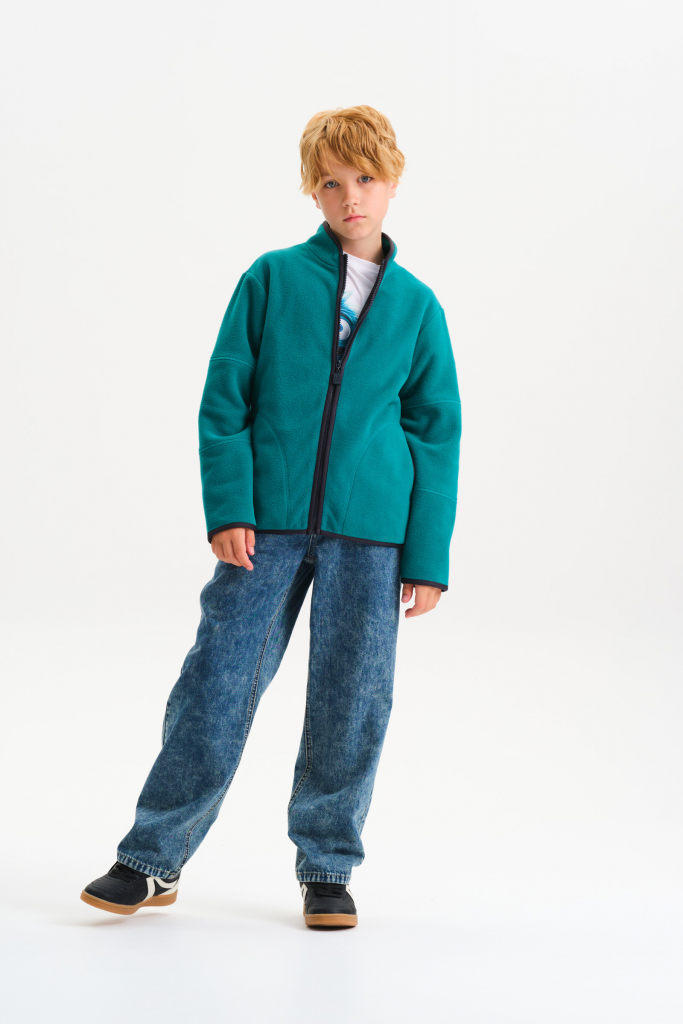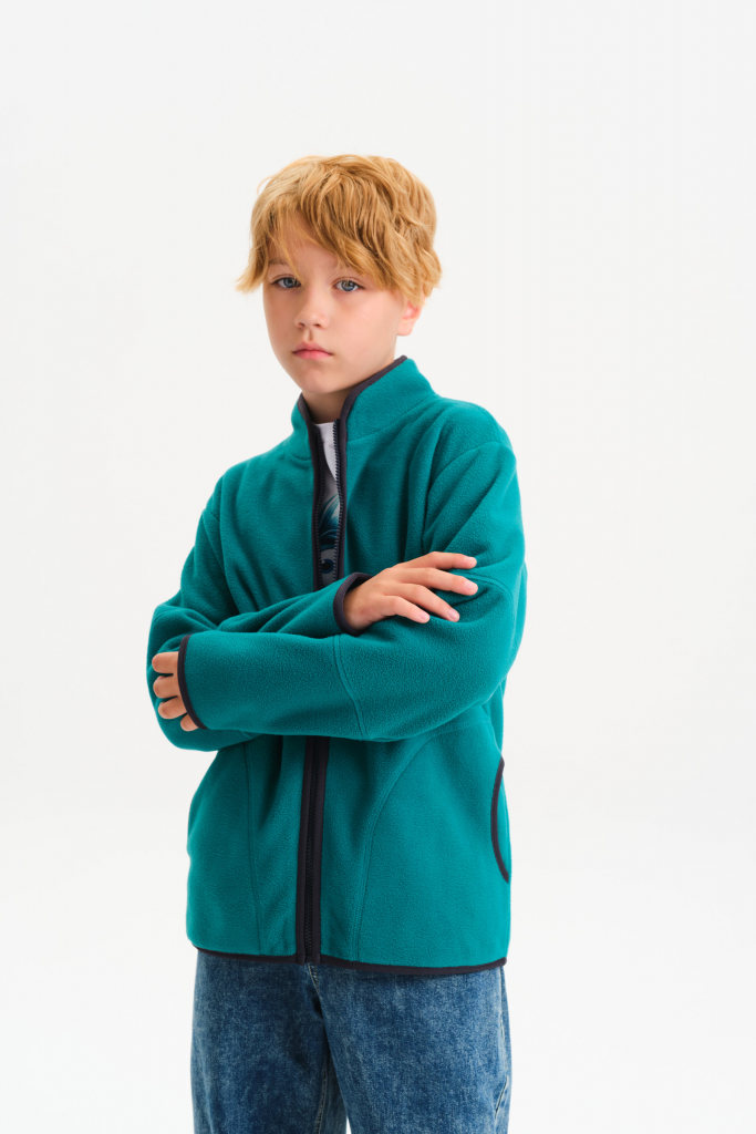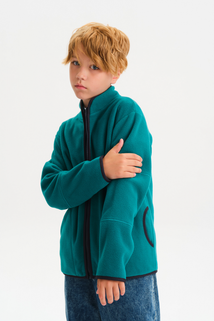 Флисовая зипка прямого силуэта — удобная, тёплая и универсальная вещь, сочетающая в себе комфорт толстовки и функциональность поддевы. Её можно носить как самостоятельный слой, так и под куртку или комбинезон. Благодаря компактному объему и чуть расширенной линии плеч, кофта не сковывает движения и хорошо сидит на ребёнке. Мягкий флис приятен к телу, отлично сохраняет тепло, быстро сохнет и легко стирается — мамам не придётся тратить много времени на уход. Модель продумана до мелочей: удобная молния, воротник-стойка, фигурные боковые карманы с аккуратной отделкой трикотажным кантом. Декоративные строчки на рукавах и спинке подчёркивают качество пошива. Практичная, лёгкая и тёплая — зипка станет незаменимой в гардеробе ребёнка.