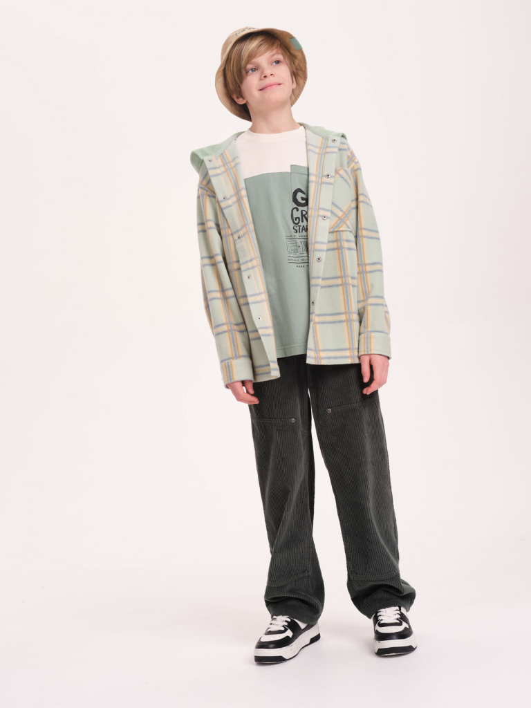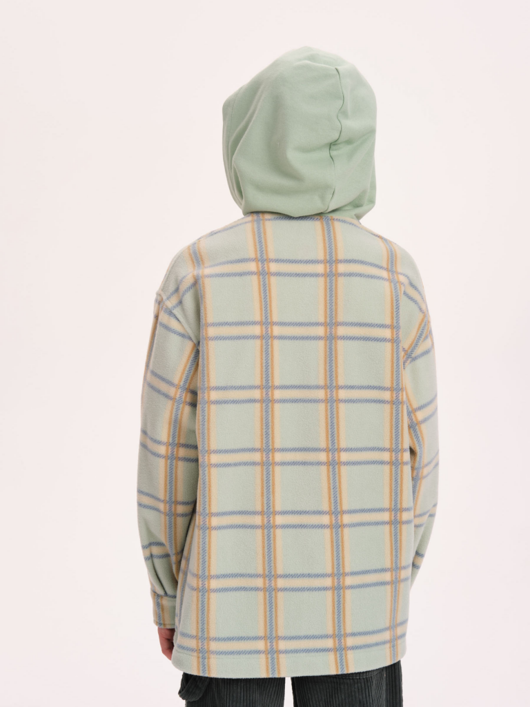 Рубашка флисовая для мальчика. Теплая толстовка в клетку идеальный вариант для весны. Застегивается на кнопки. Капюшон выполнен из футера, без регулировки объема. По переду накладной карман. Манжеты на рукавах застегиваются на кнопку. Размерная линейка подходит как для малыша так и для подростка.