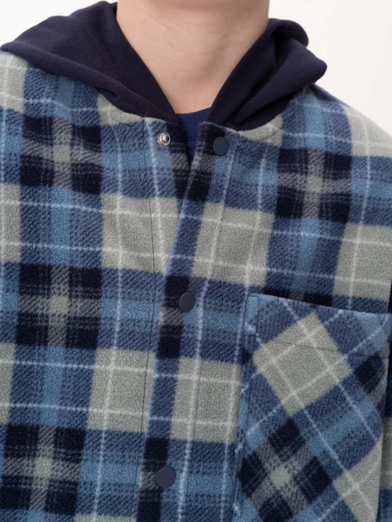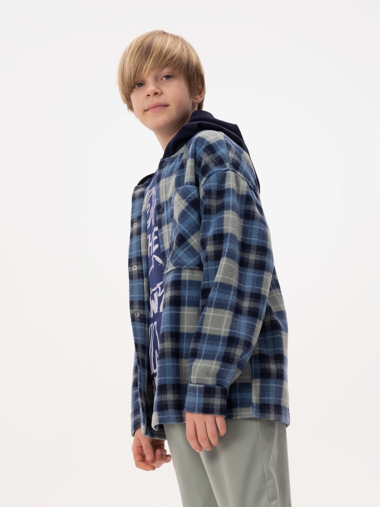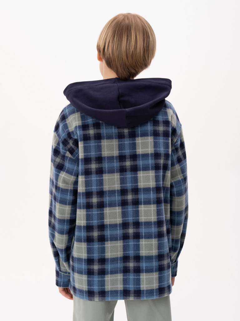 Рубашка флисовая для мальчика. Теплая толстовка в клетку идеальный вариант для весны. Застегивается на кнопки. Капюшон выполнен из футера, без регулировки объема. По переду накладной карман. Манжеты на рукавах застегиваются на кнопку. Размерная линейка подходит как для малыша так и для подростка.