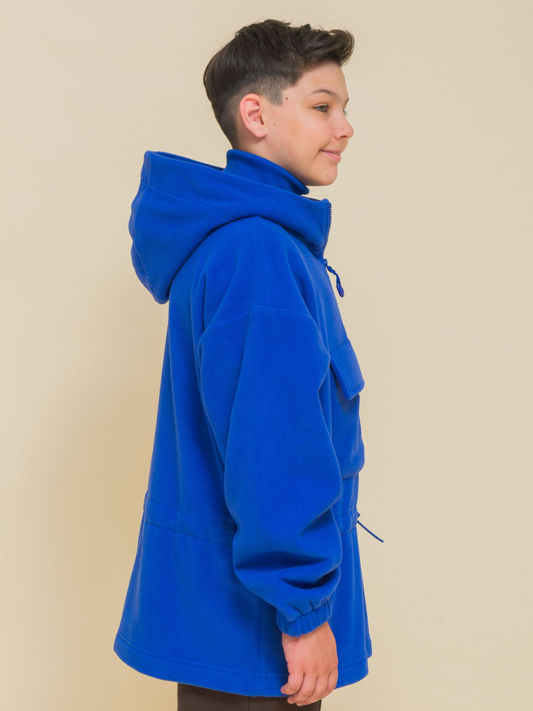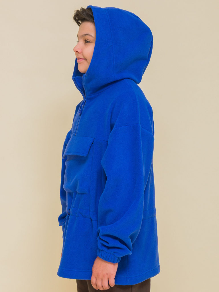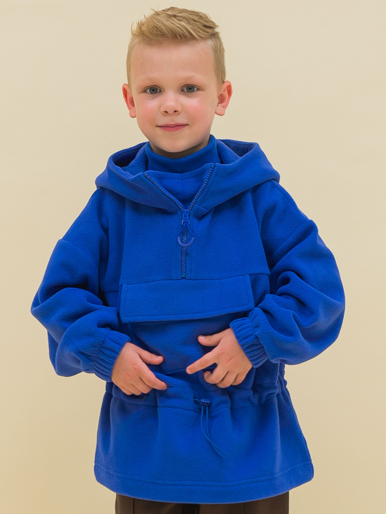Детский анорак для мальчика. Флисовая куртка оверсайз-силуэта со спущенным плечом подарит ребёнку комфорт и не будет стеснять его движений. Капюшон защищает от холода и ветра. По переду застёжка на короткую молнию — актуальный модный тренд. В манжетах рукавов комфортная широкая резинка. В поясе предусмотрена утяжка для регулировки объёма изделия. По переду удобный накладной карман с клапаном для хранения важных мелочей, закрывается на липучку. Детский анорак лаконичного дизайна, без принта. Толстовка неприхотлива в уходе. Флис тёплый, лёгкий, мягкий, просто стирается и быстро сохнет, не выгорает и не скатывается, одежда из него надолго сохраняет великолепную форму. Куртка на мальчика выполнена в двух трендовых цветах: зелёный и синий. Размерный ряд: 1 (86): 2 (92): 3 (98): 4 (104): 5 (110): 6 (116): 7 (122): 8 (128): 9 (134): 10 (140): 11 (146). Анорак оверсайз-силуэта идеален для малышей, мальчиков дошкольного и младшего школьного возраста, а также подростков. Он подходит для детского сада, прогулок, активного отдыха, спорта. Хорошо сочетается с разлиными брюками. Прекрасная куртка на осень и весну (демисезон), а также прохладное лето. Анорак станет отличным подарком сыну, внуку, брату или племяннику на любой праздник или просто в качестве знака внимания и заботы.