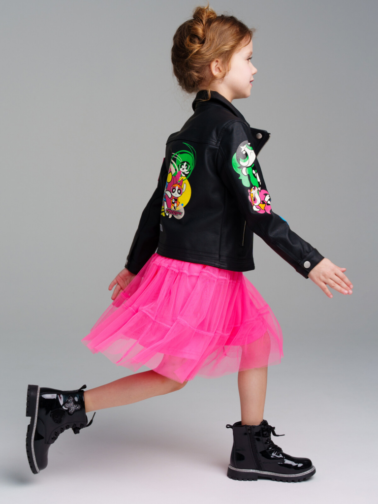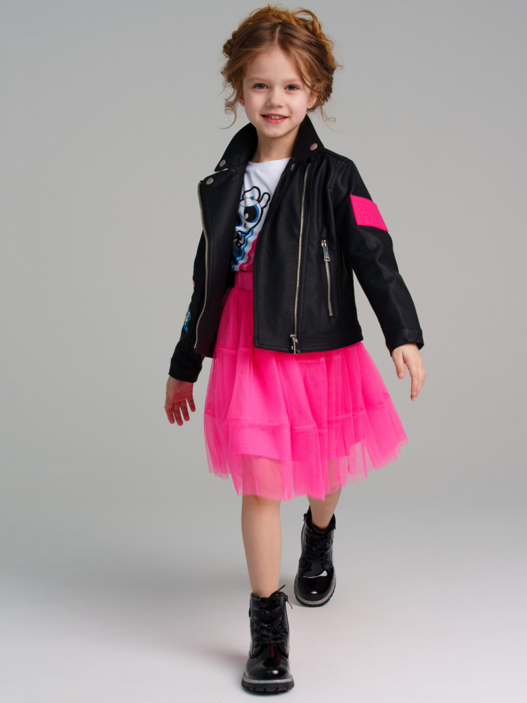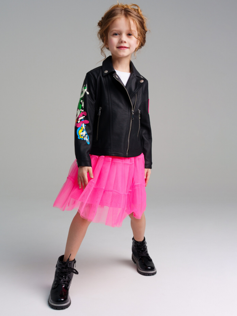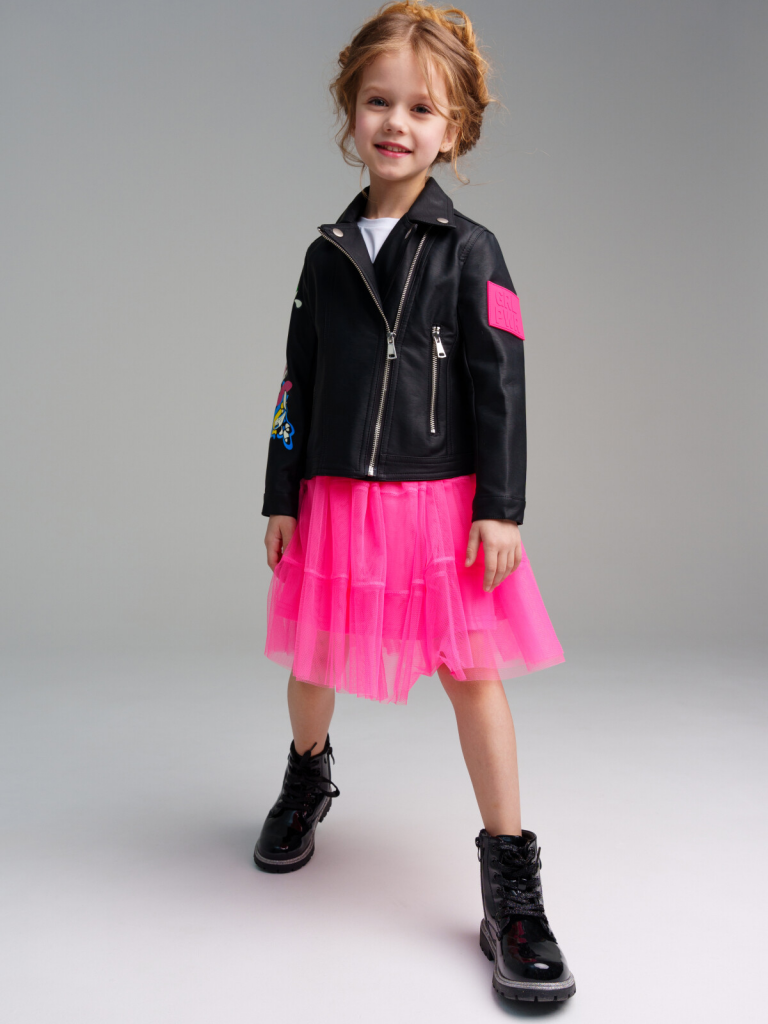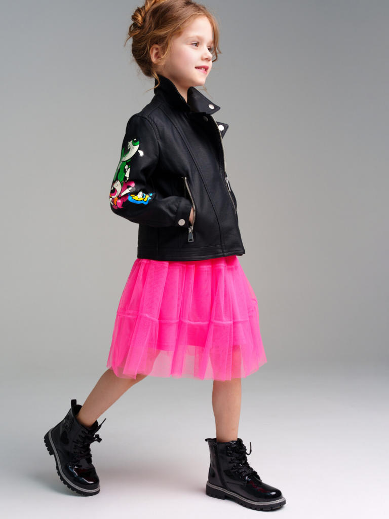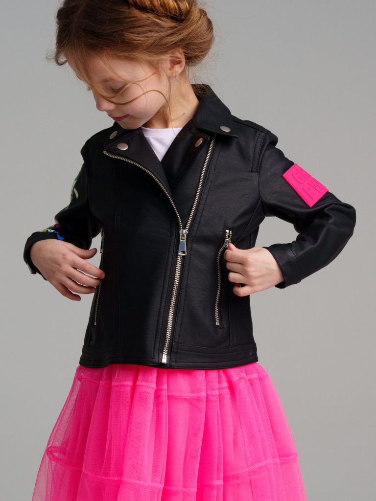 Куртка-косуха из экокожи. Гладкая подкладка тафетта. Два боковых кармана на молнии.