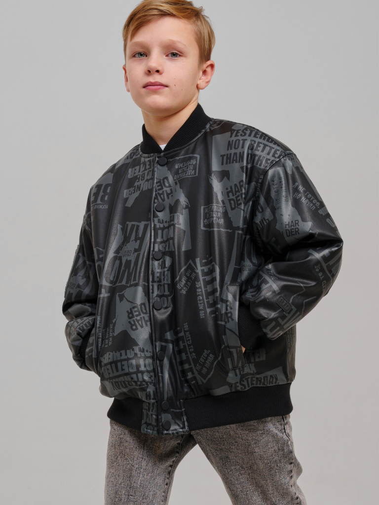 Бомбер для мальчика подростка.Бомбер из экокожи. Температурный режим до 0°С*. Линия температурного режима DEMI. Идеально подходит для весны и осени. Внутренняя ветрозащитная планка. Трикотажные манжеты. Низ изделия на резинке. Два боковых кармана. *Пожалуйста, обратите внимание, что указанный температурный режим является приблизительным и зависит от многих факторов, таких, как возраст, физическое состояние, уровень активности ребенка и количество слоев одежды. Время, проведенное на открытом воздухе, и погодные условия, такие как холодный ветер, могут повлиять на тепловые характеристики изделия. Убедитесь, что защищены от холода голова, руки и ноги.