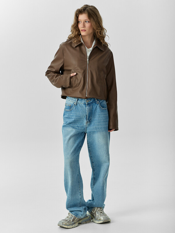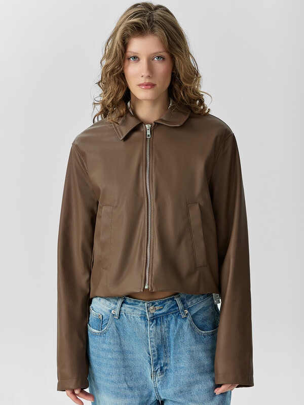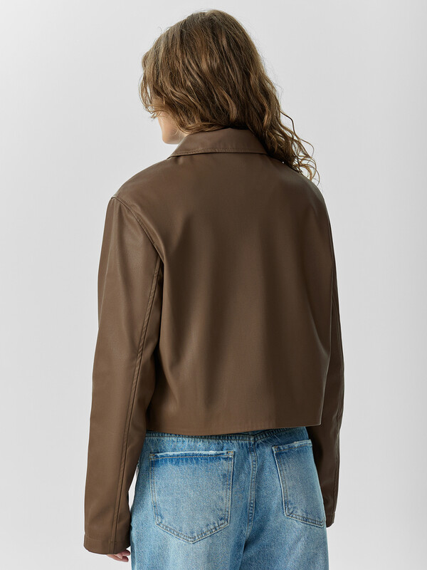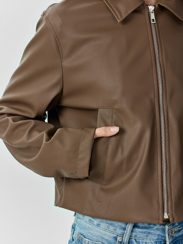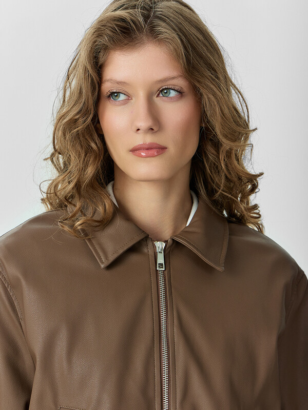 Женская куртка прямого укороченного силуэта — это стильное сочетание лаконичности и функциональности. Выполненная из высокопрочной искусственной кожи, она не только эффектно выглядит, но и служит надежной защитой от ветра и влаги. Подкладка добавляет комфорт и тепло, делая модель подходящей для прохладных дней. Круглая горловина с отложным воротником привносит нотку элегантности, а центральная молния спереди позволяет легко надевать и снимать изделие. Длинные рукава и боковые карманы — практичные элементы, дополняющие образ. Обтачка по нижнему краю делает силуэт завершенным и подчеркивает качество пошива. Такую куртку легко представить в городском образе — она подойдет как к джинсам, так и к юбке.