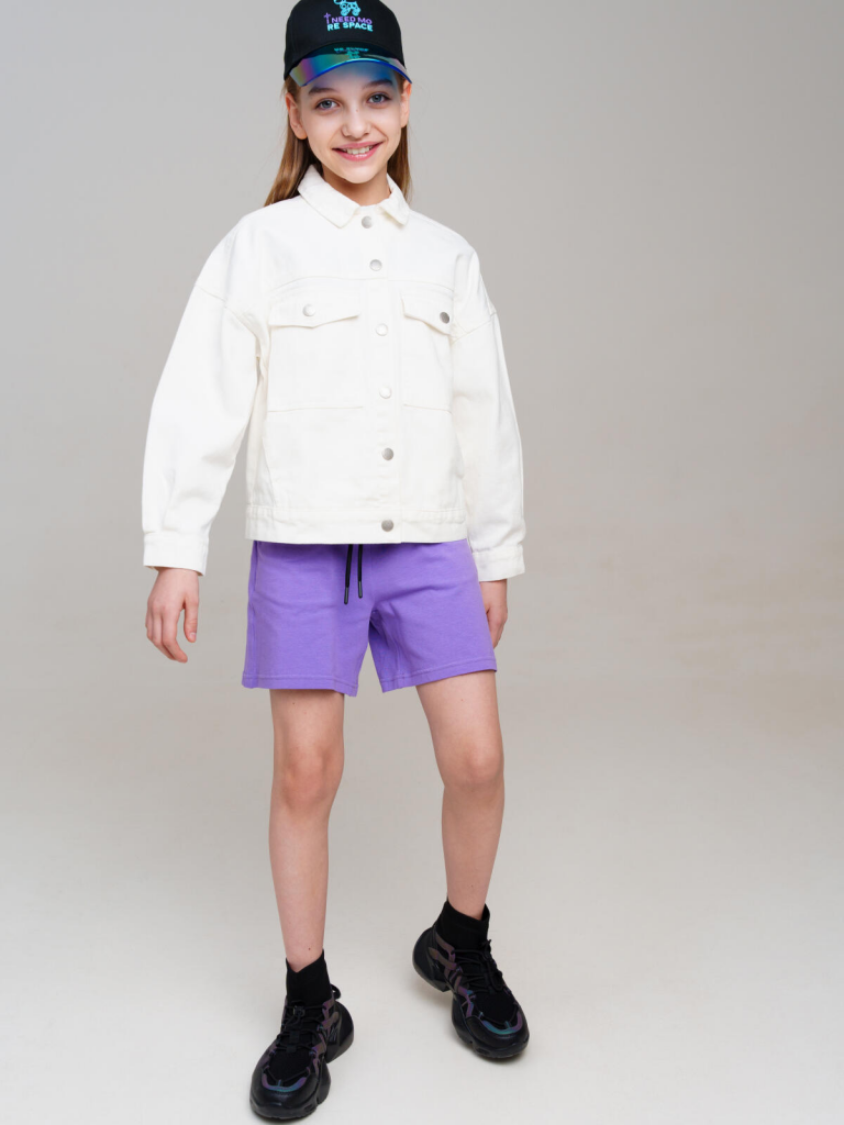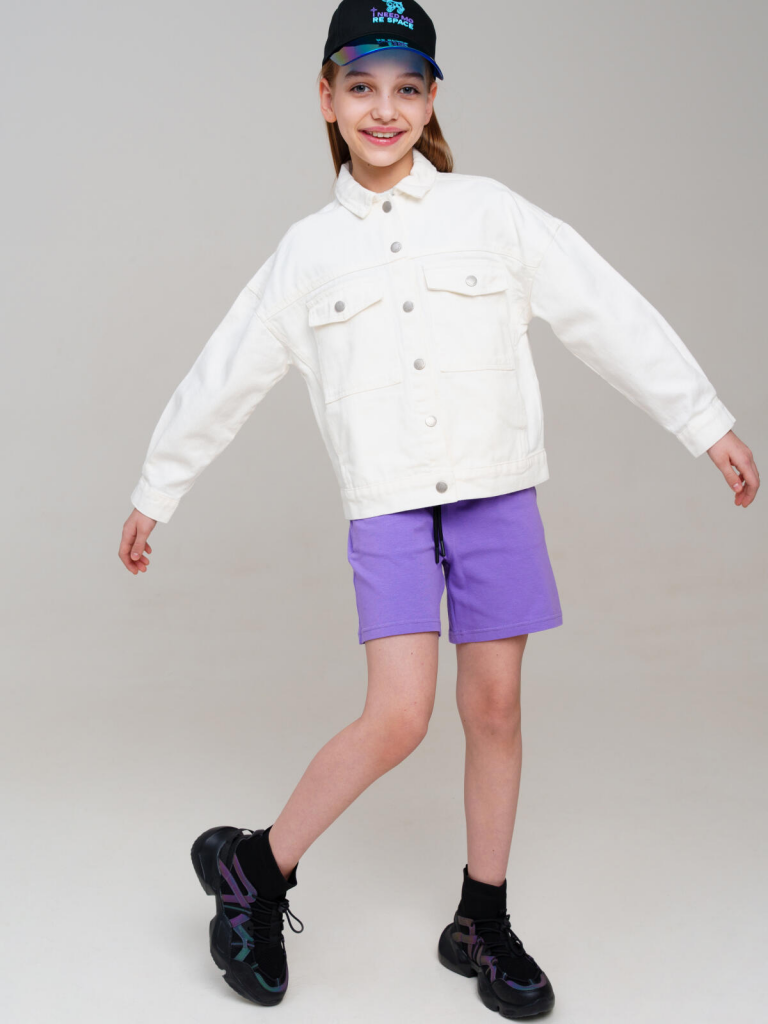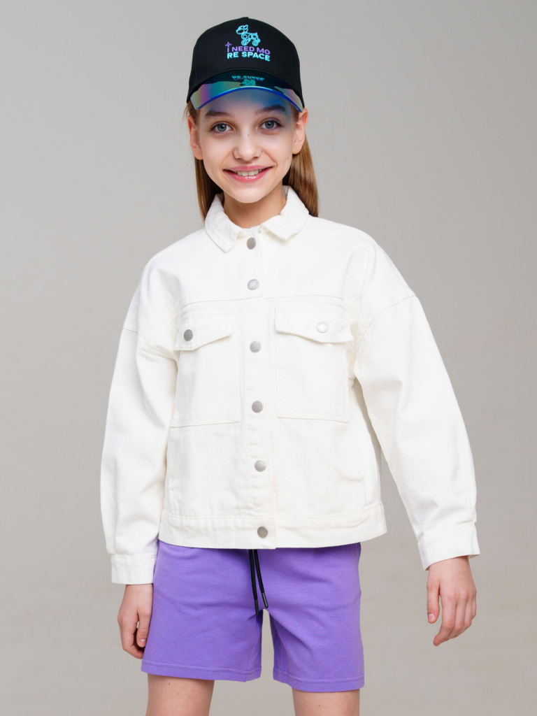 Джинсовка для девочки подростка. Куртка джинсовая из эластичного денима. Эластичный пояс с резинками внутри, растягиваясь и сокращаясь, мгновенно подстраивается под реальные размеры талии. Функциональные нагрудные и боковые карманы. Средняя длина. Застежка на кнопки.