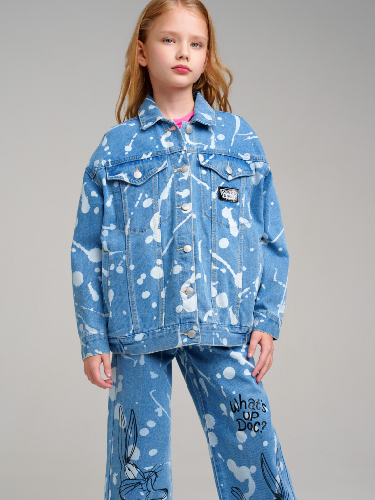 Джинсовка для девочки подростка. Куртка джинсовая из эластичного денима. Эластичный пояс с резинками внутри, растягиваясь и сокращаясь, мгновенно подстраивается под реальные размеры талии. Ширина пояса регулируется. Функциональные нагрудные и боковые карманы. Средняя длина. Застежка на болты.