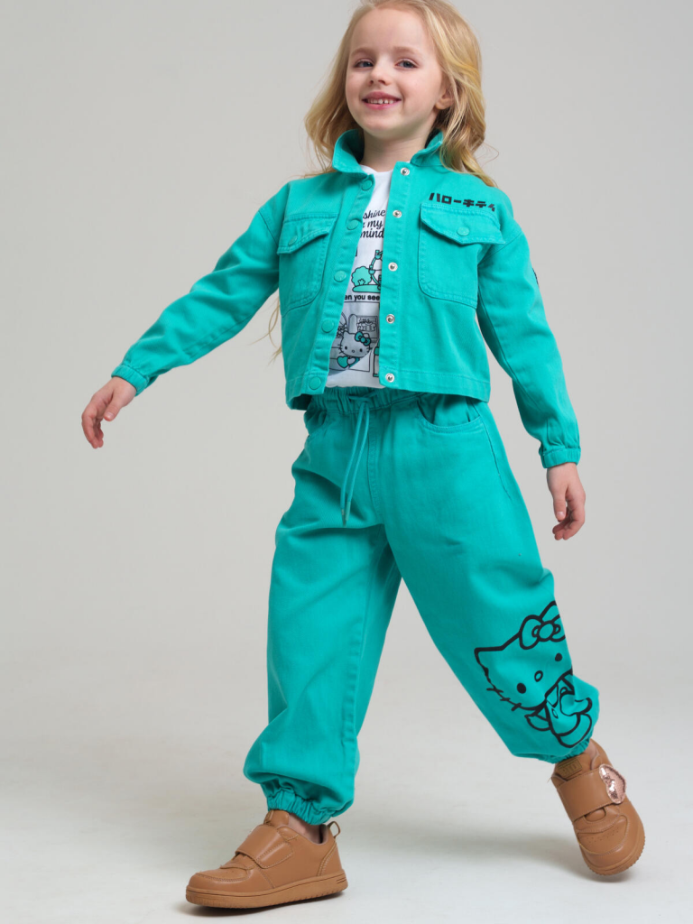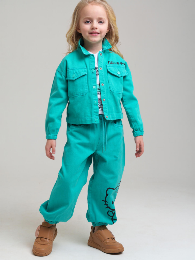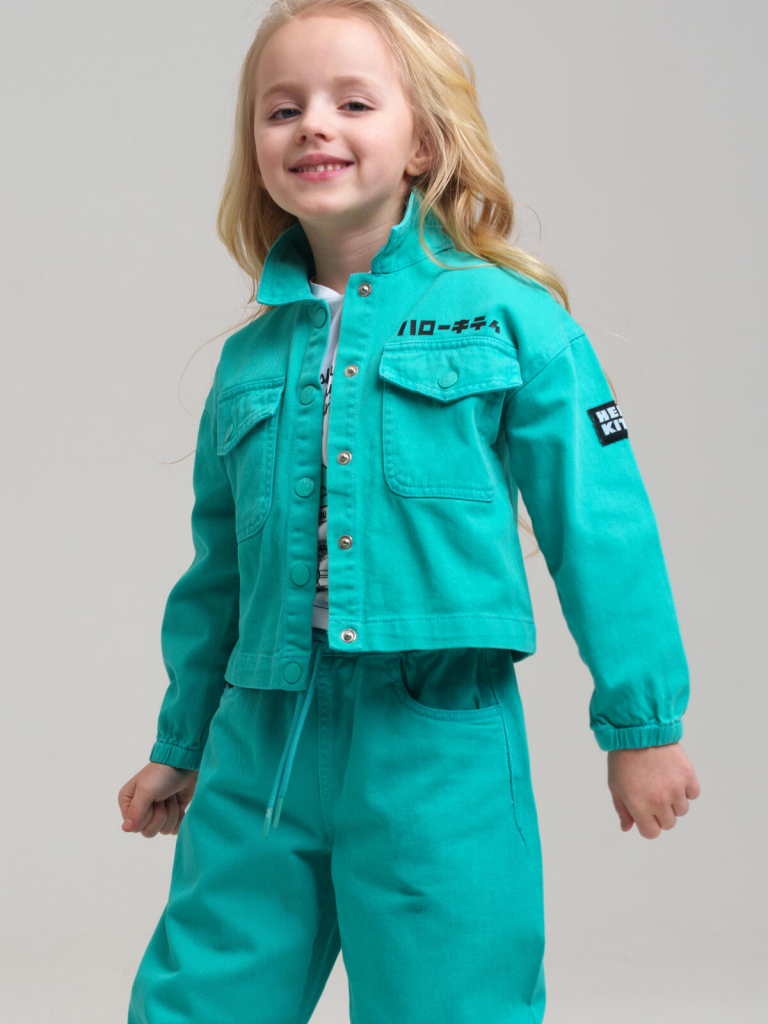Джинсовка детская для девочки. Куртка джинсовая из эластичного денима. Высокое содержание хлопка. Функциональные нагрудные карманы. Средняя длина. Застежка на кнопки.