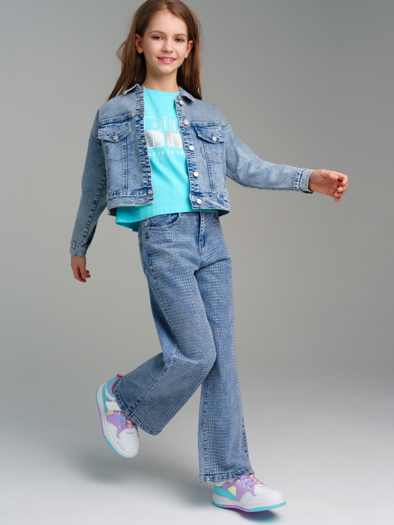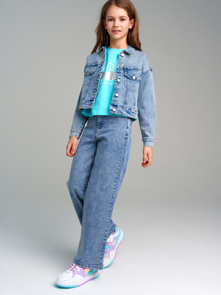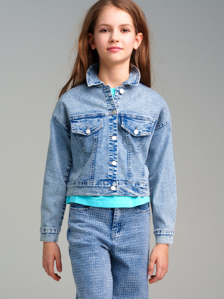 > Куртка текстильная джинсовая для девочек синий
