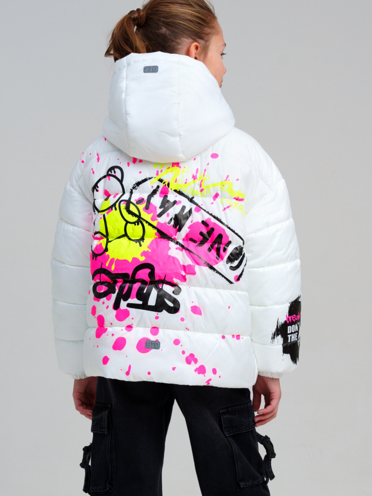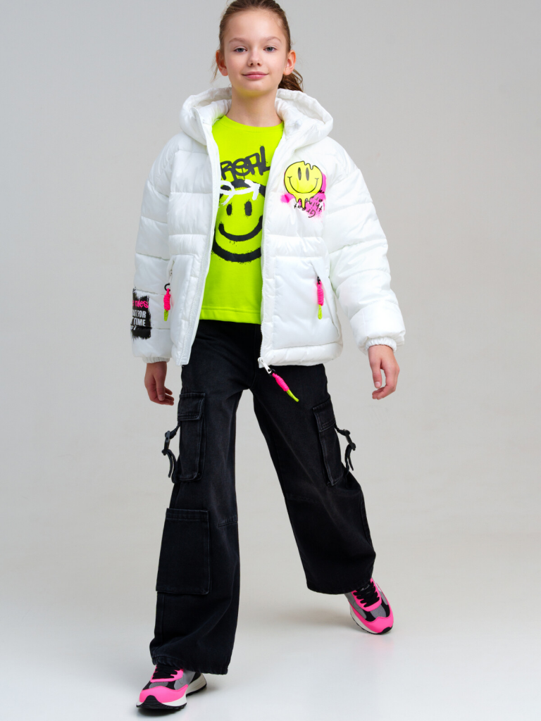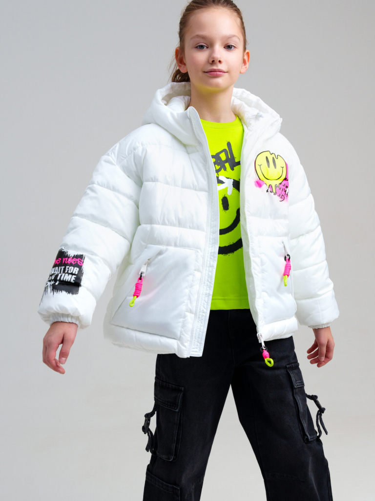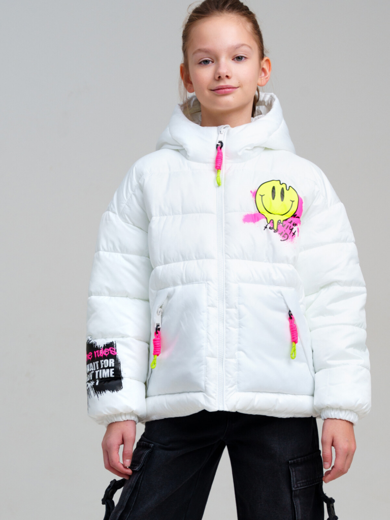 > Куртка текстильная с полиуретановым покрытием для девочек белый,фуксия,светло-зеленый