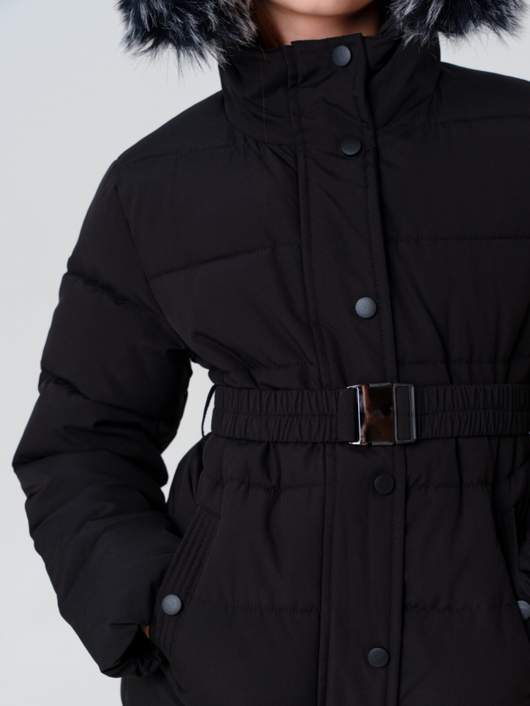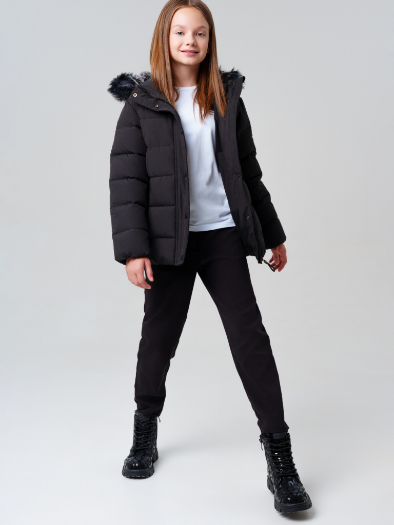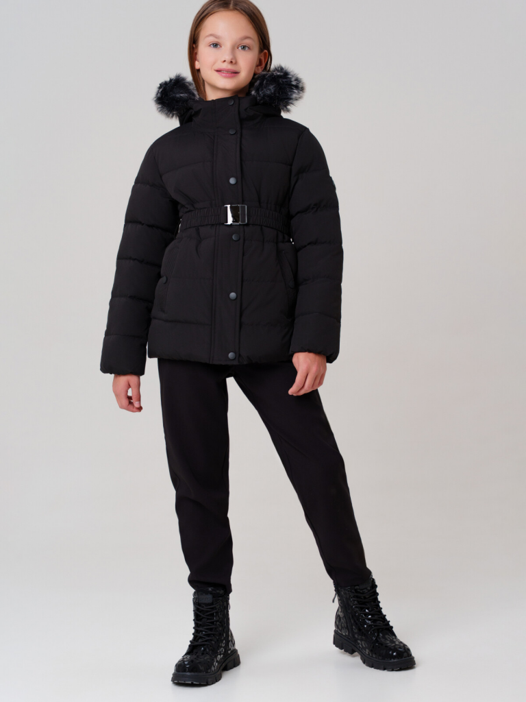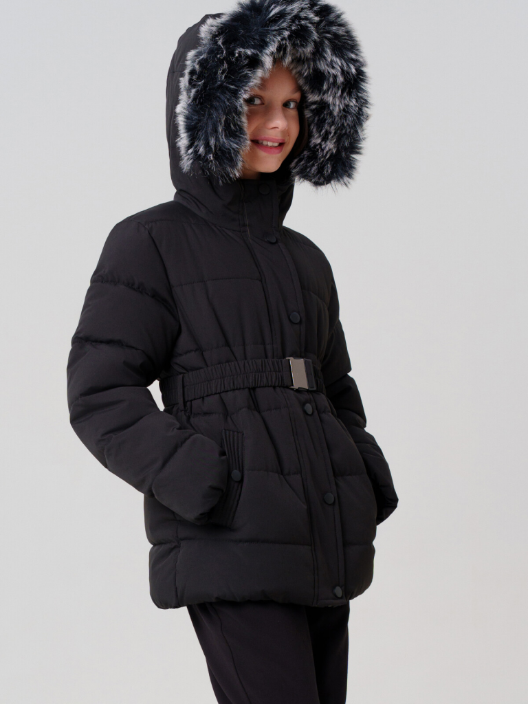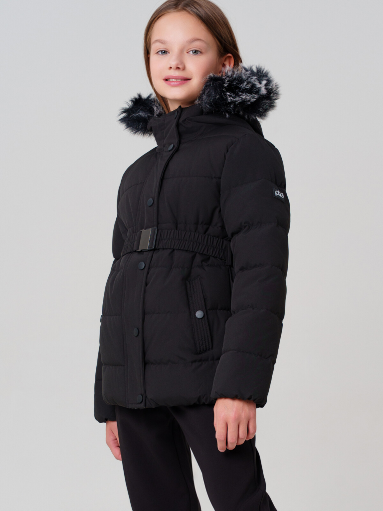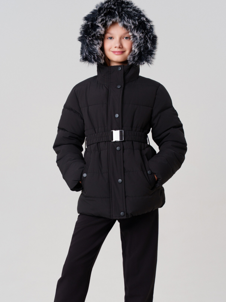 Зимняя куртка для девочки. Тёплая и стильная зимняя куртка для подростка идеально подойдёт для холодной осени и зимы (температурный режим до -20°С). Модель выполнена в линии Winter, что гарантирует комфорт и защиту от ветра и осадков благодаря непромокаемым и не продуваемым материалам. Особенности:+ Удобная флисовая подкладка для дополнительного уюта.+ Практичные боковые карманы на кнопках - ничего не потеряется.+ Несъемный капюшон - надежная защита от ветра и осадков.+ Съемная меховая опушка на кнопках.+ Внутренний карман на молнии.+ Резинка по низу для плотной посадки и сохранения тепла.Отличный вариант в школу - сочетает функциональность и аккуратный внешний вид. Эта школьная куртка подчеркнёт стиль вашего ребёнка, обеспечивая тепло и комфорт в любую погоду.Для девочки, которая ценит удобство и практичность!