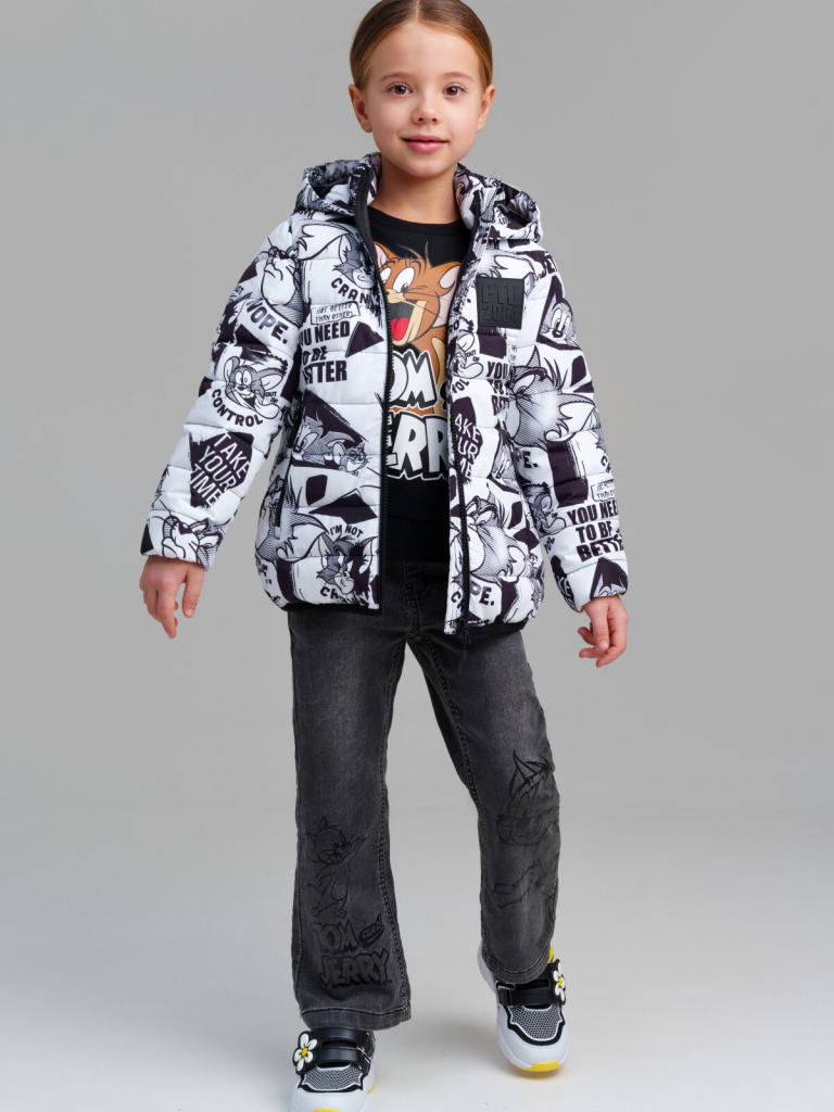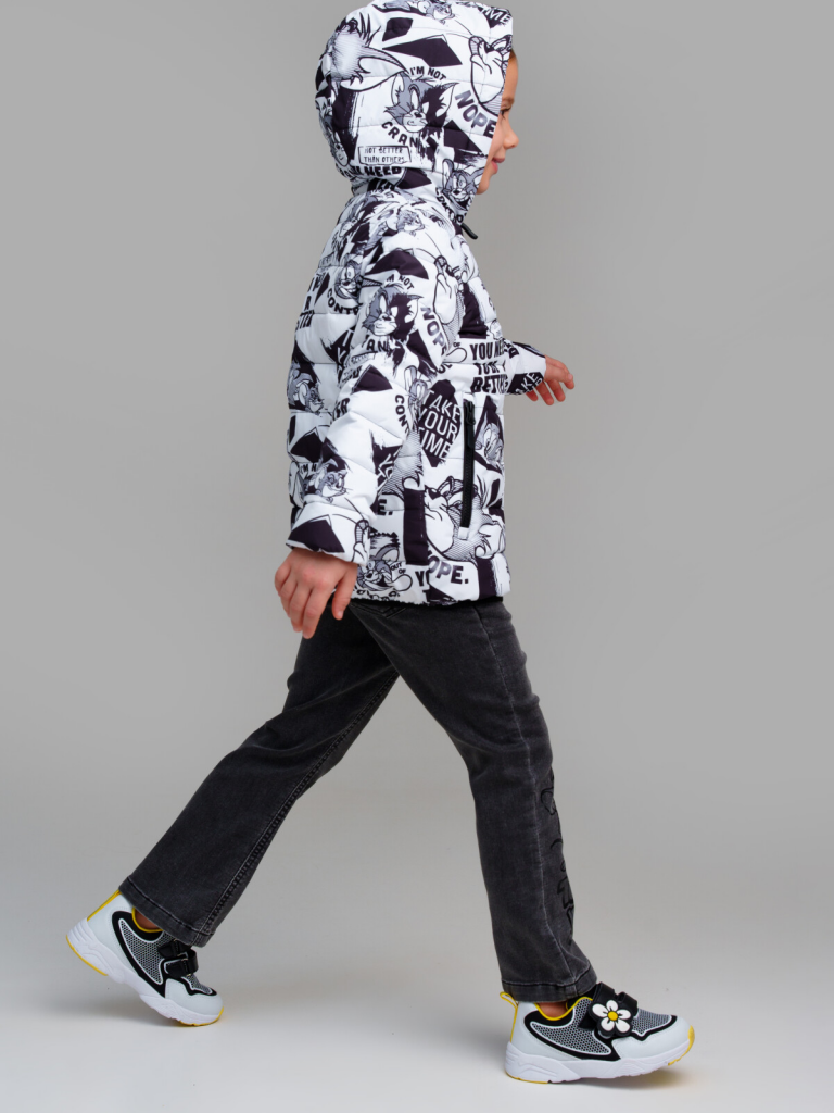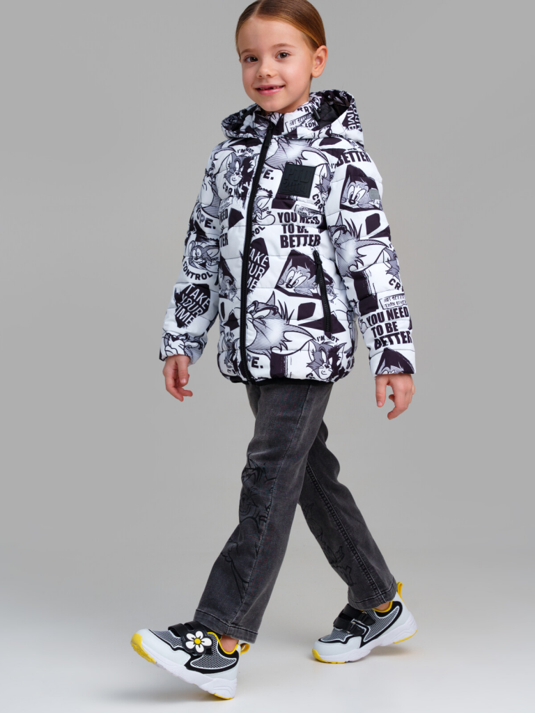 Куртка текстильная с полиуретановым покрытием для девочек черный,белый