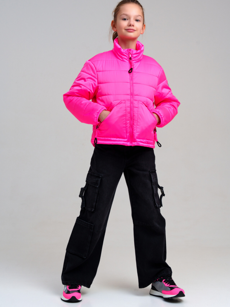 Куртка текстильная с полиуретановым покрытием для девочек фуксия