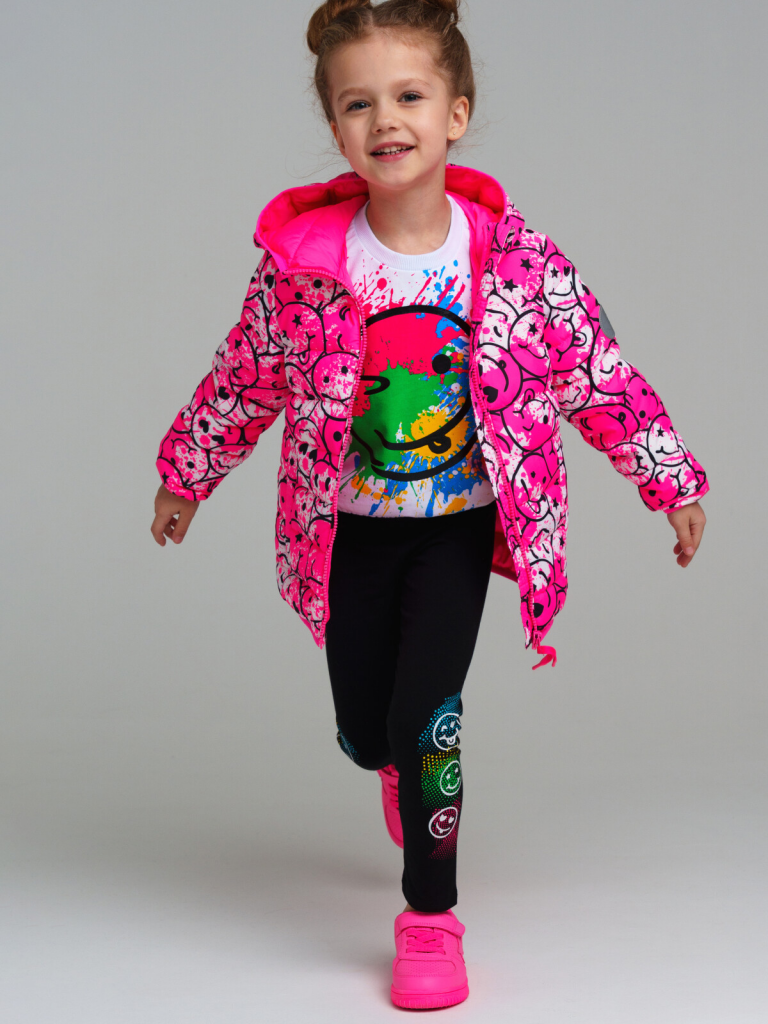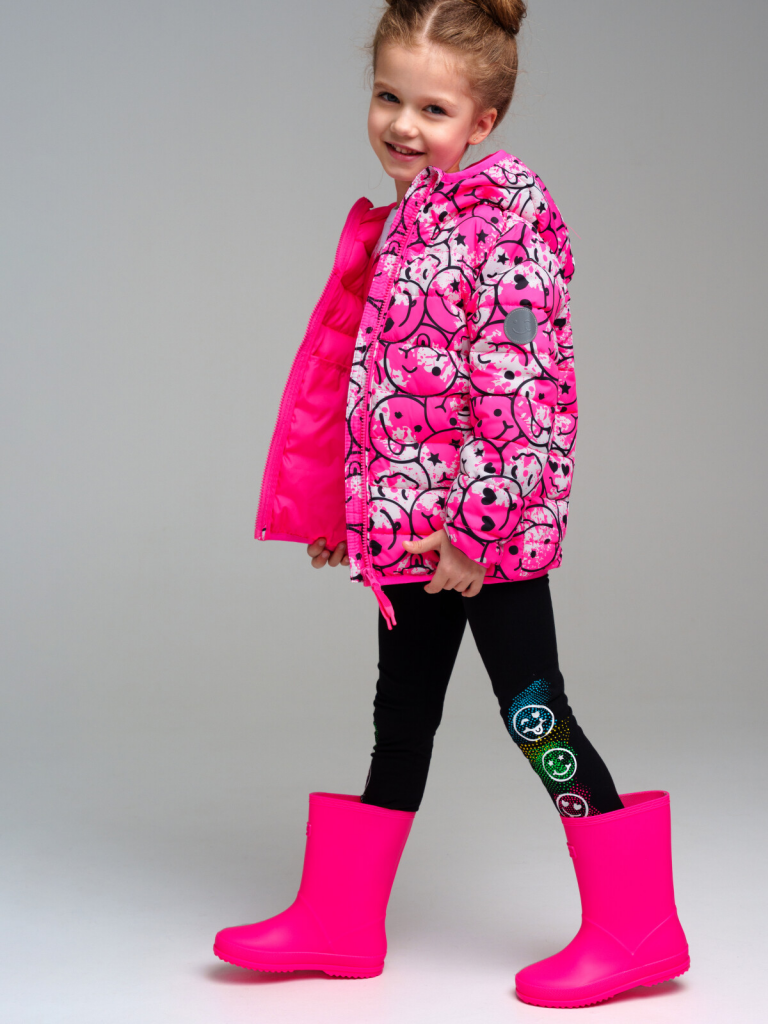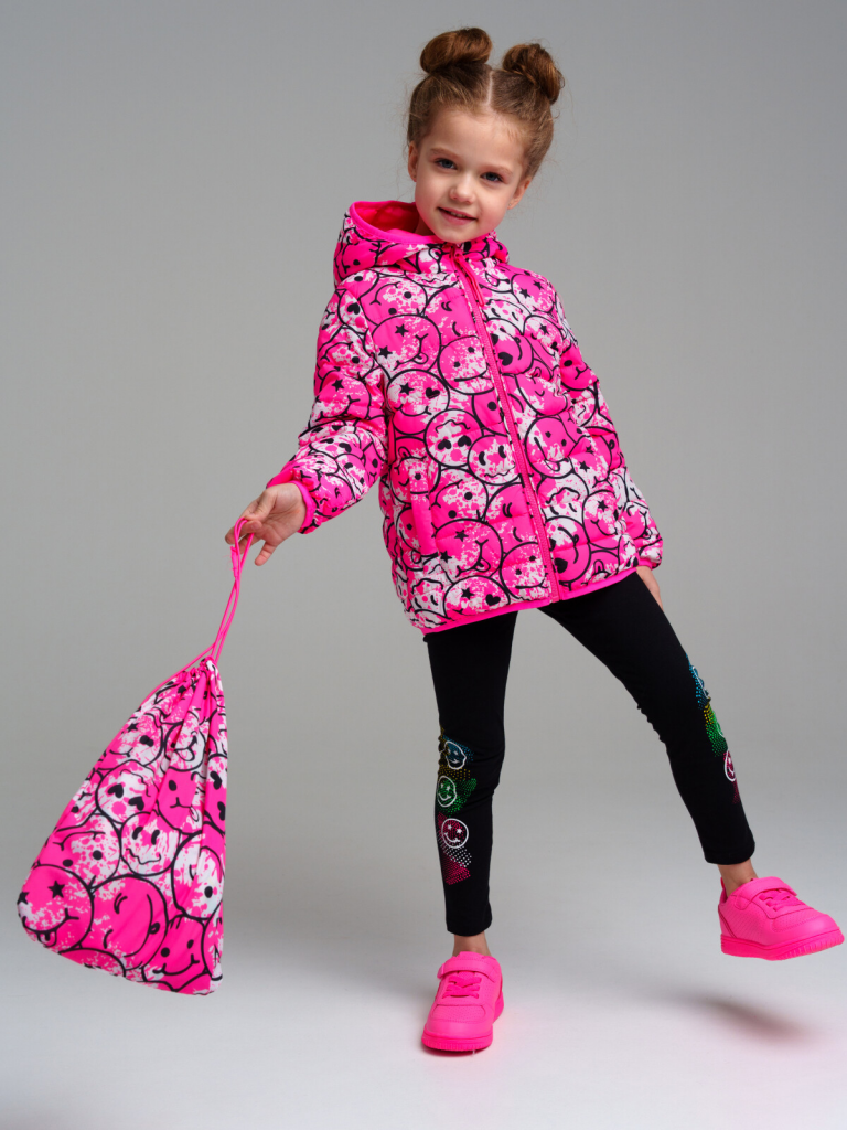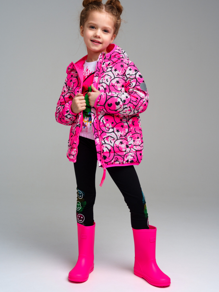 > Куртка текстильная с полиуретановым покрытием для девочек фуксия,разноцветный
