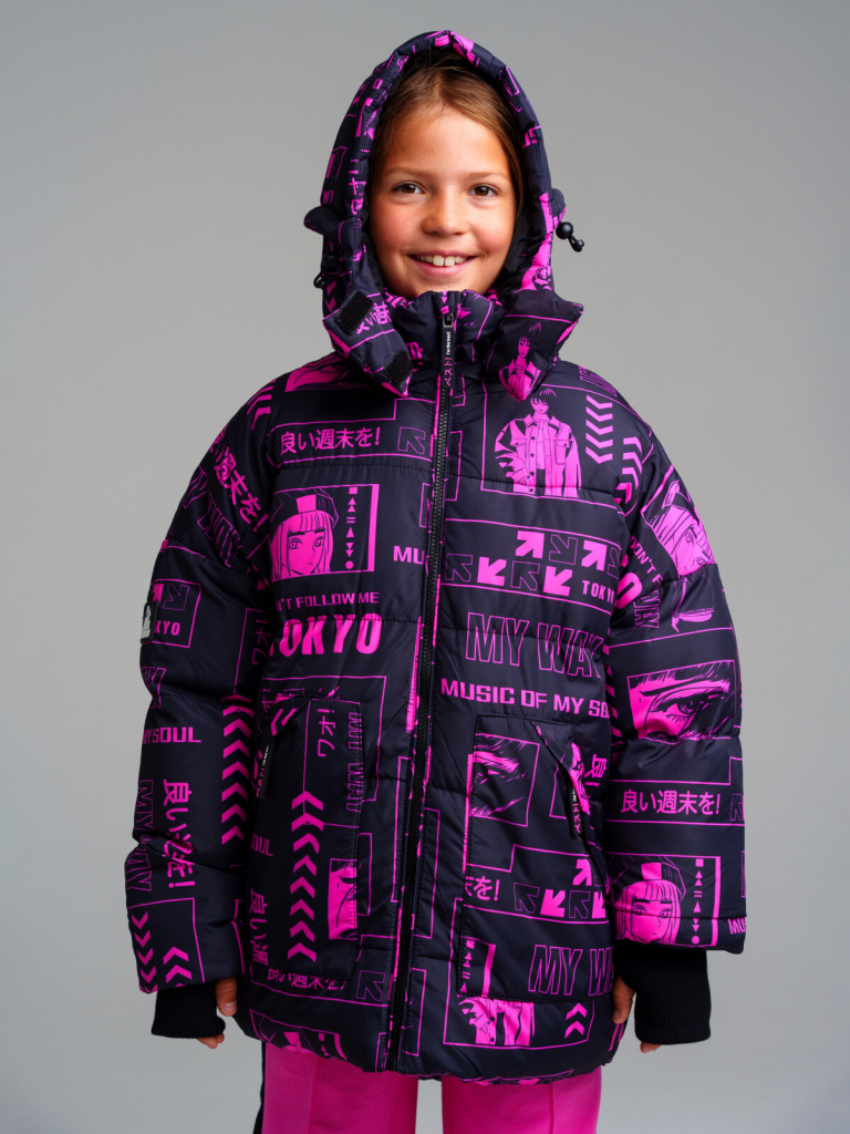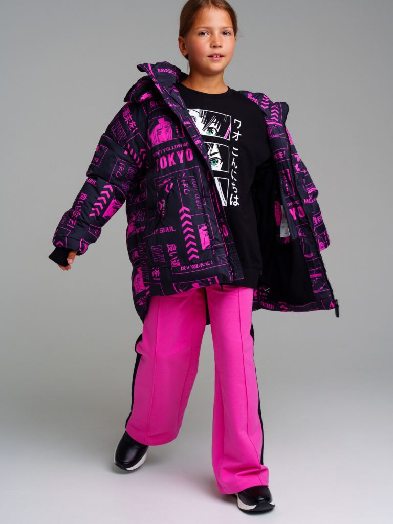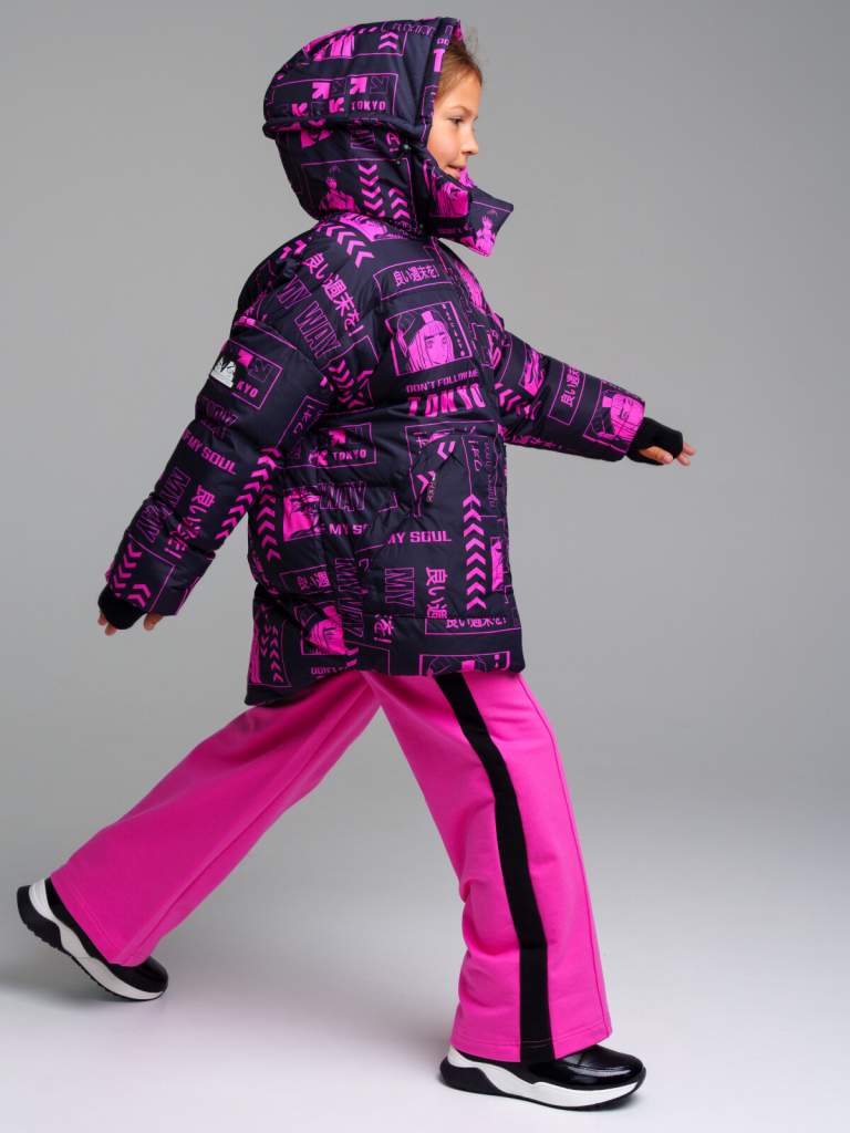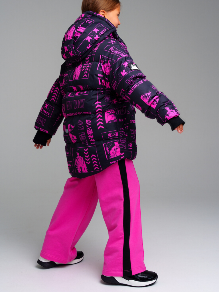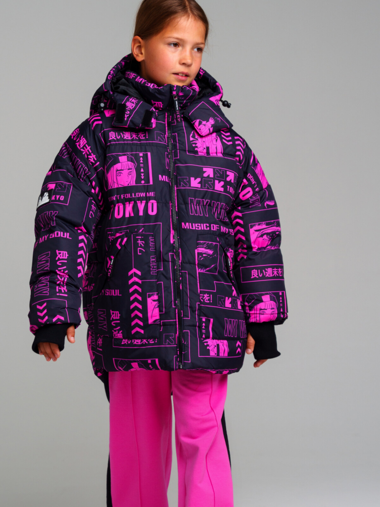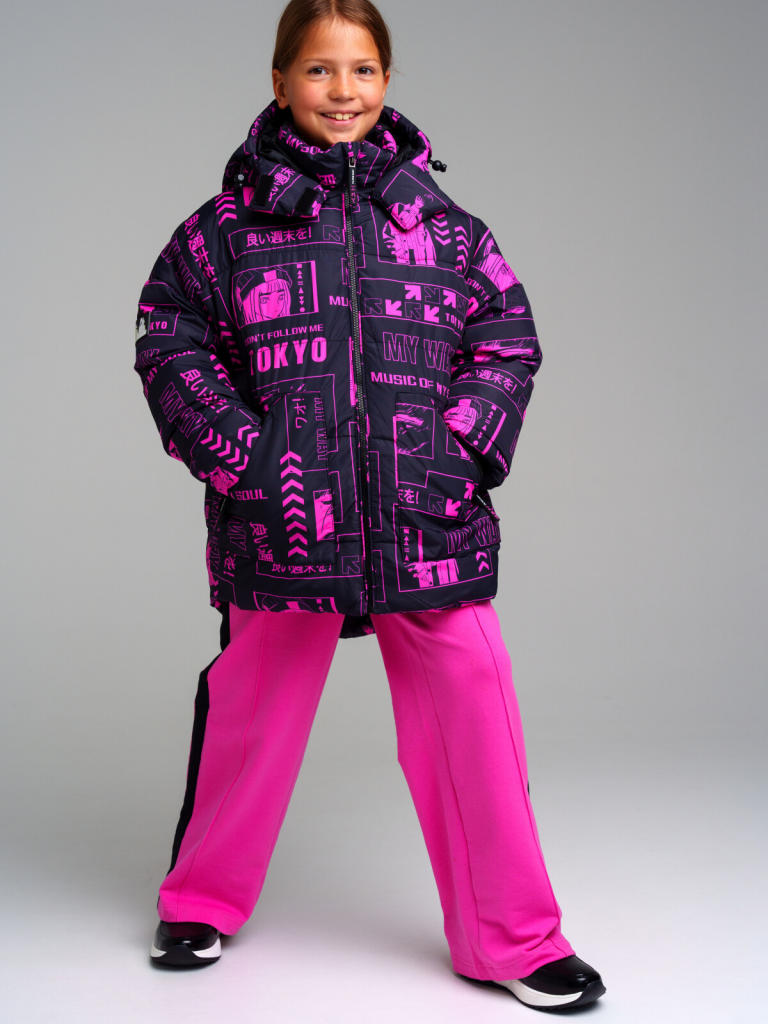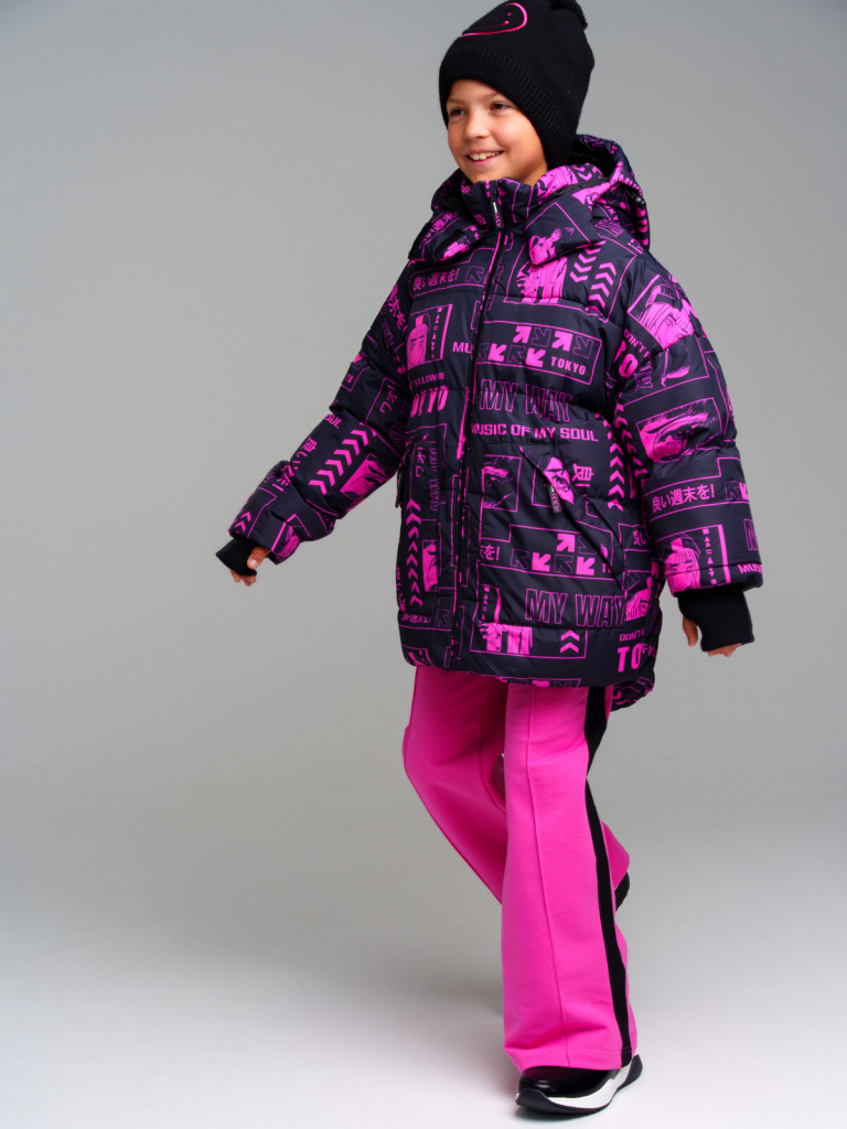 > Куртка текстильная с полиуретановым покрытием для девочек сиреневый,черный