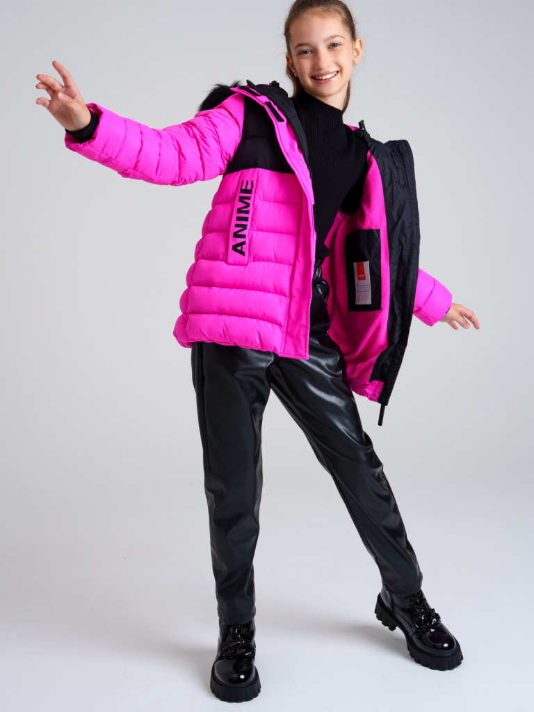 > Куртка текстильная с полиуретановым покрытием для девочек сиреневый,черный