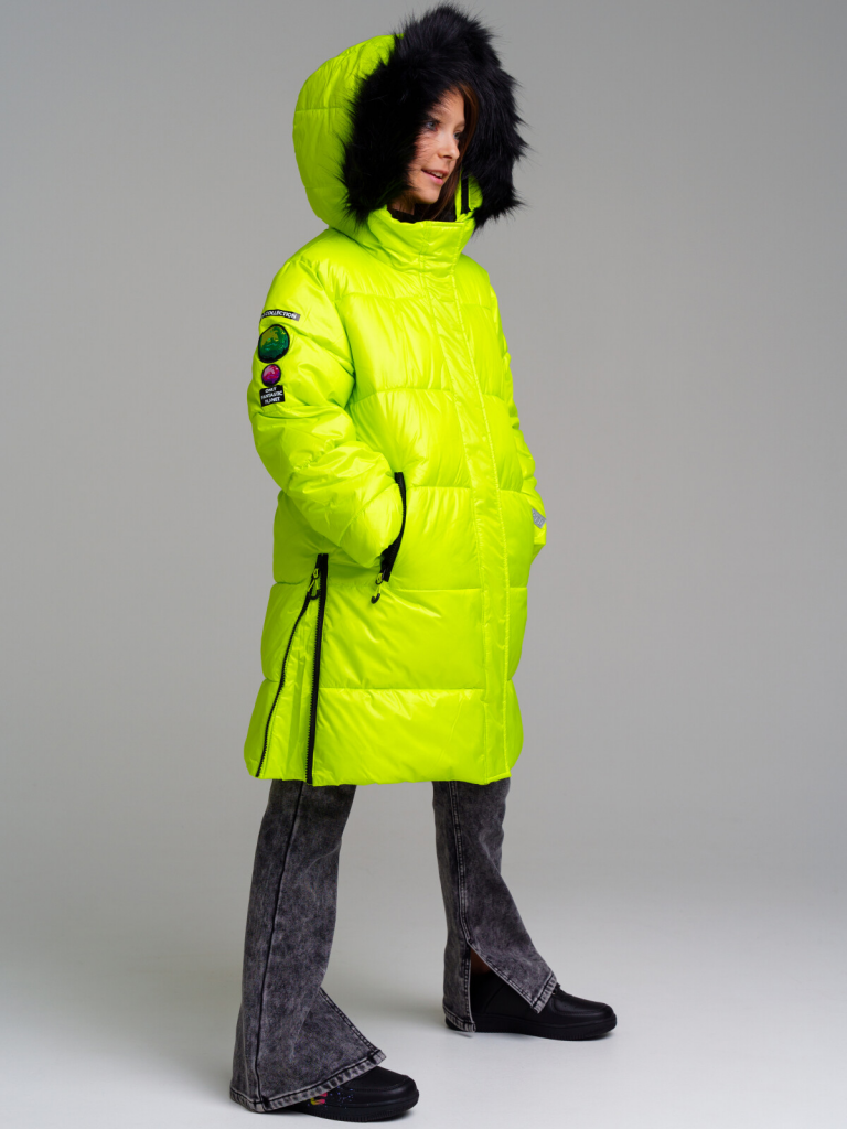 Пальто зимнее. Линия Nord - высокая степень теплозащиты. Температурный режим до -25С. Материал верха с ветрозащитным и водоотталкивающим покрытием. Внутренняя и внешняя ветрозащитные планки. Два боковых кармана на молнии. Внутренний карман. Подкладка - флис. Несъемный капюшон регулируемый шнурком. Съемный искусственный мех. Эластичный манжет по низу рукава. Светоотражающие элементы. *температурный режим является рекомендованным, необходимо учитывать уровень активности ребенка и многослойность поддевочной одежды (термобелье, флис).