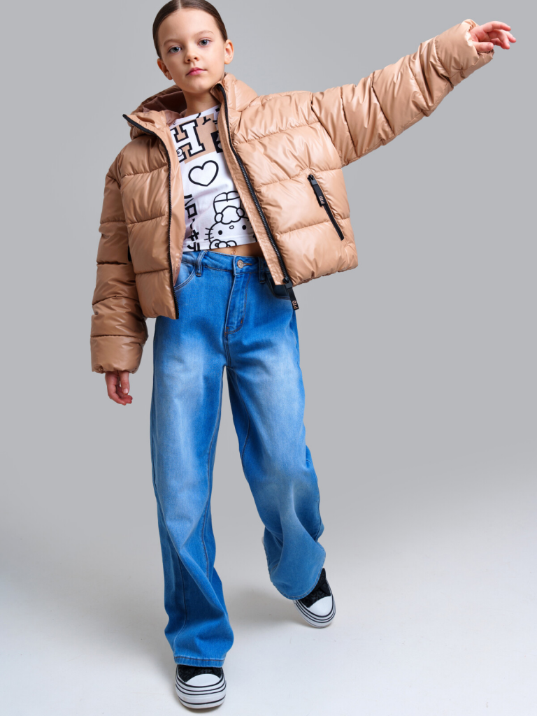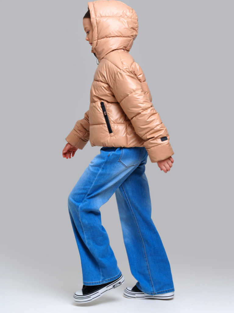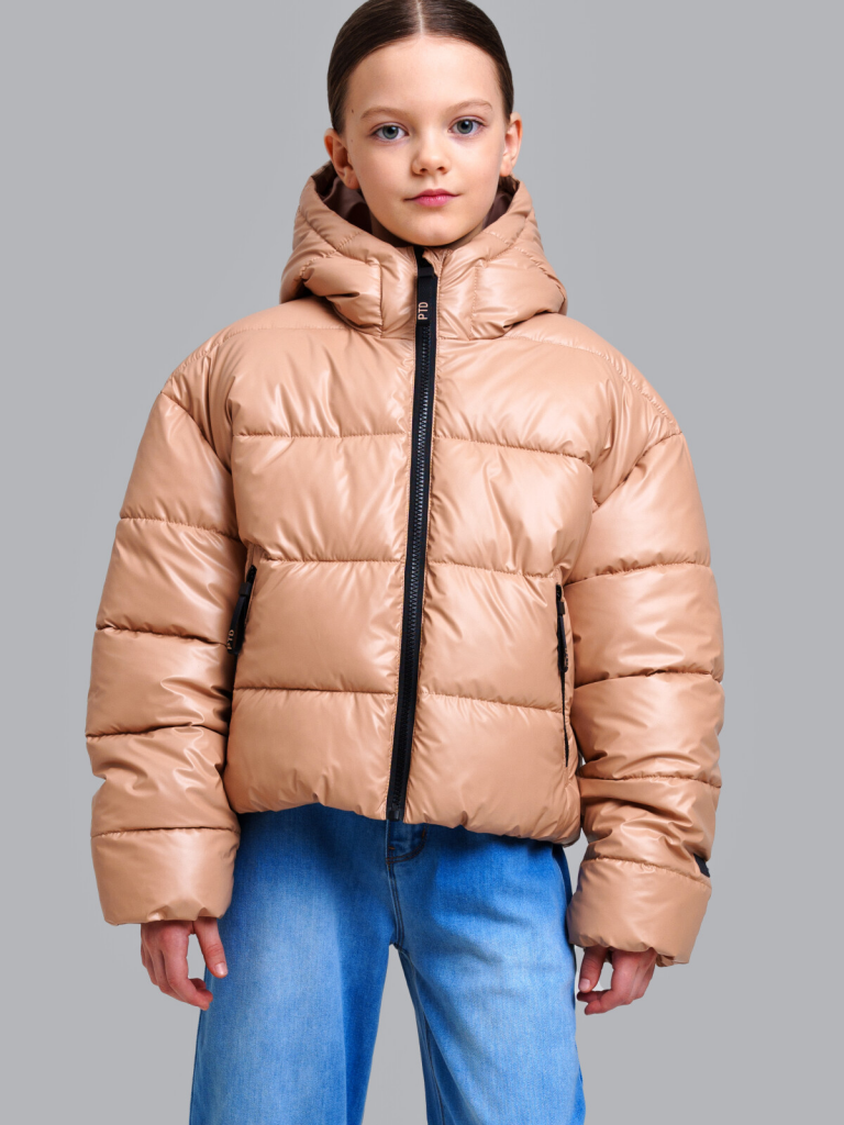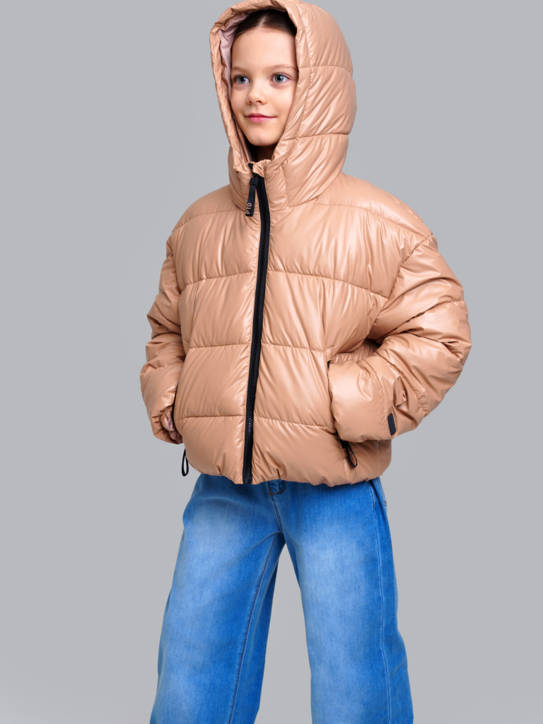 Куртка текстильная с полиуретановым покрытием для девочек темно-бежевый
