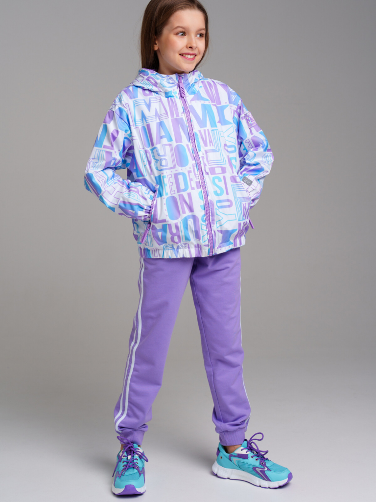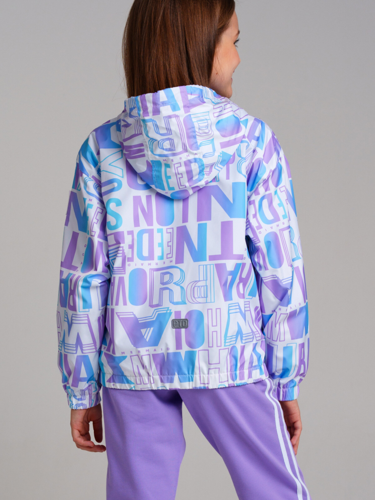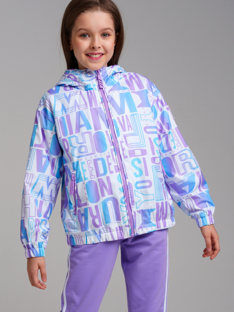 > Куртка текстильная с полиуретановым покрытием для девочек (ветровка) белый,голубой,светло-сиреневый