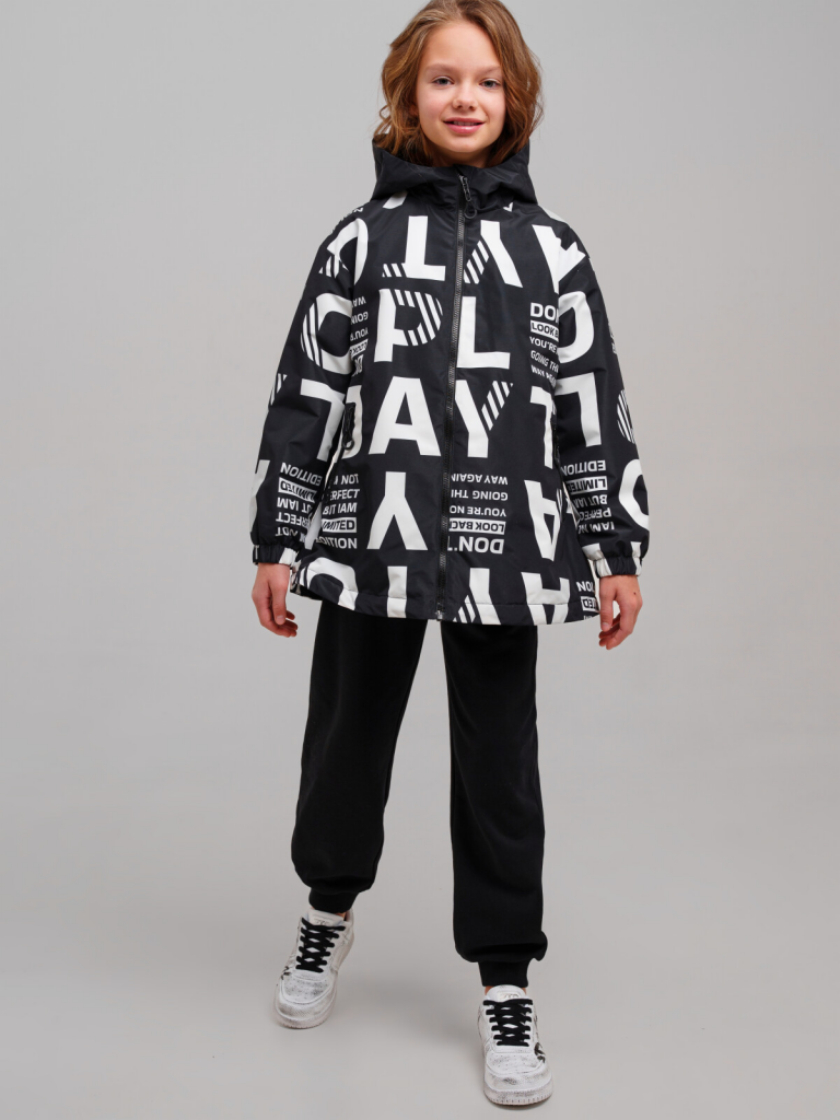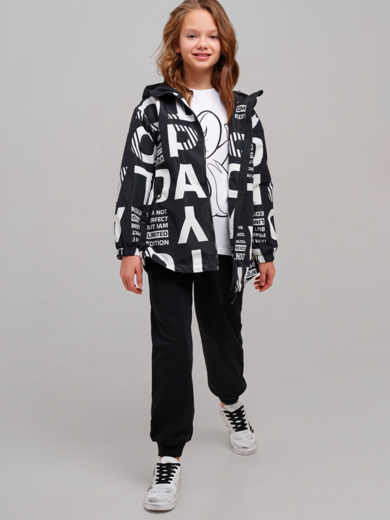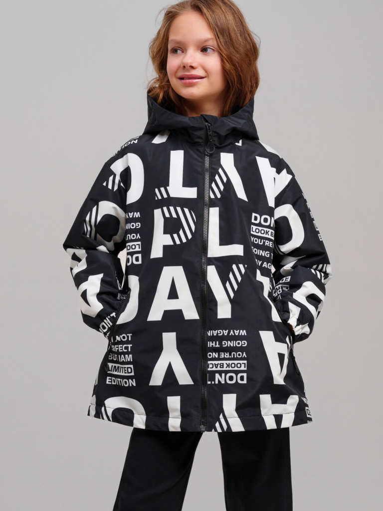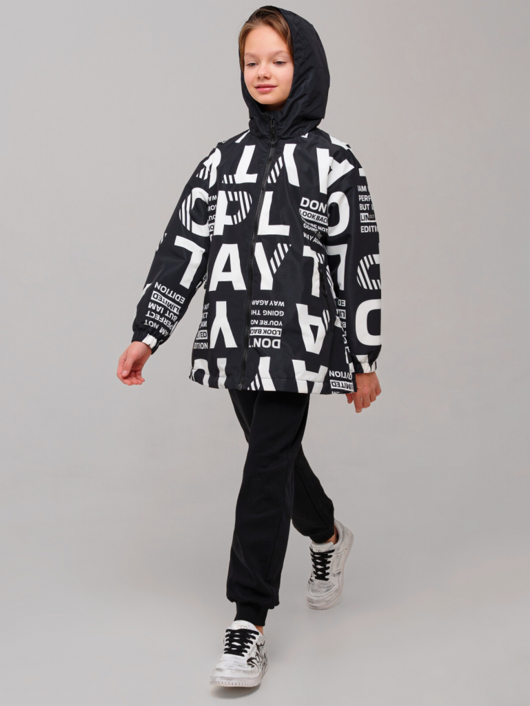 Куртка текстильная с полиуретановым покрытием для девочек (ветровка) черный,белый