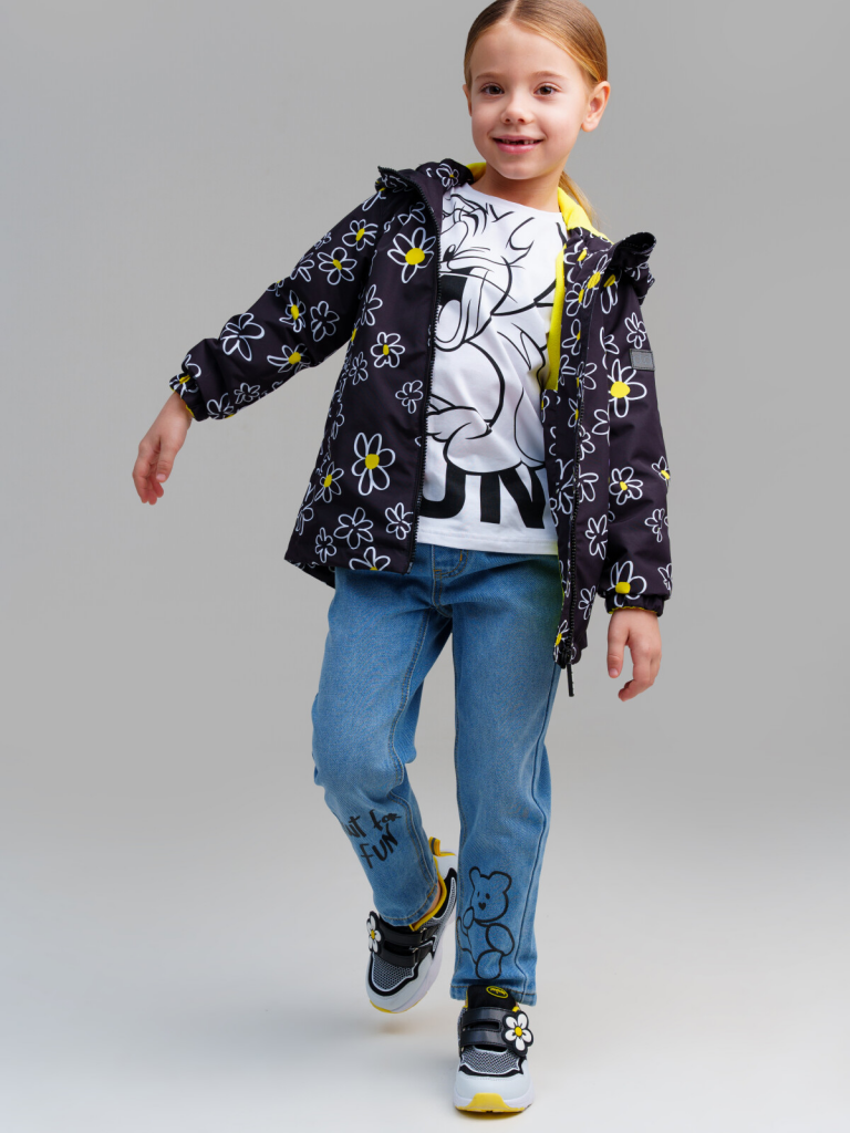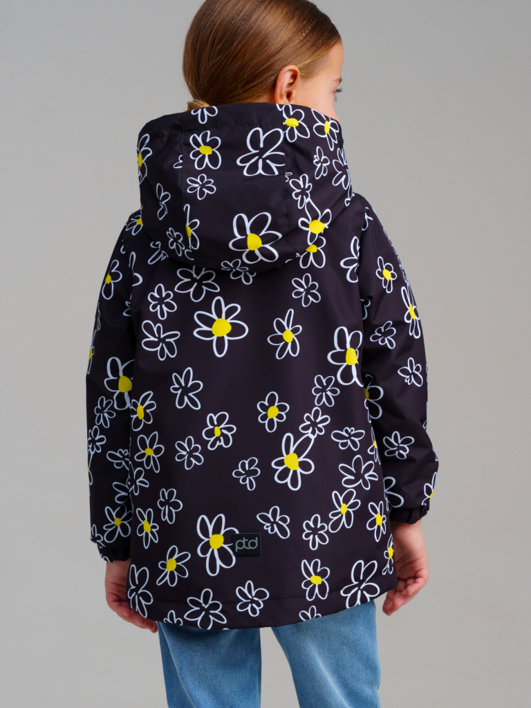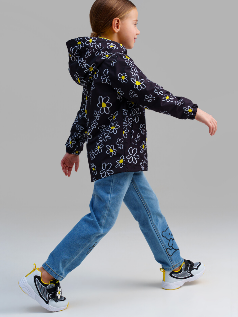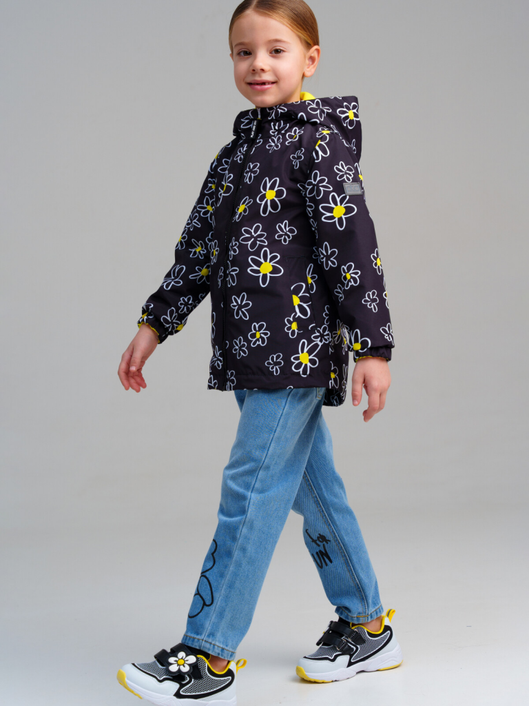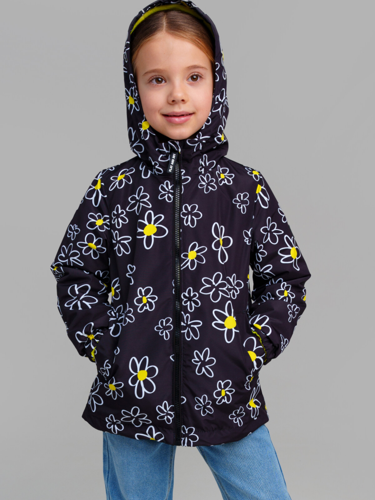 > Куртка текстильная с полиуретановым покрытием для девочек (ветровка) черный,белый,жёлтый