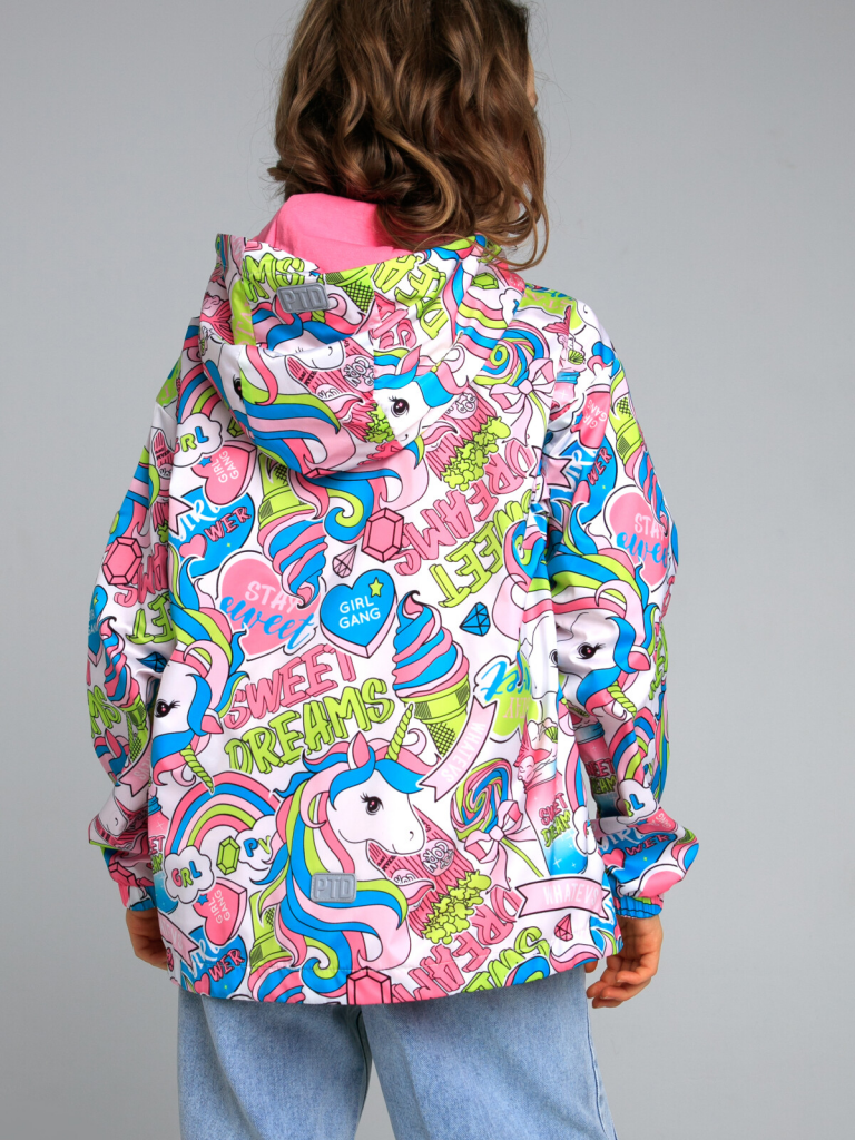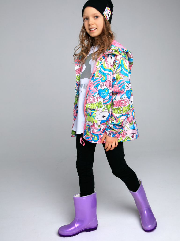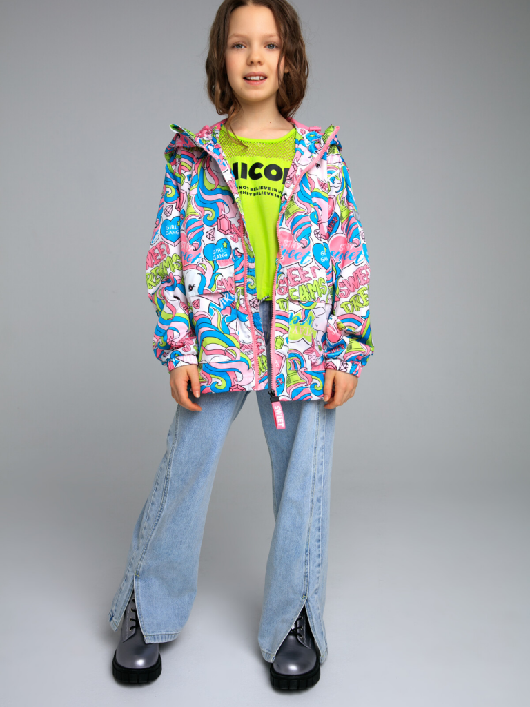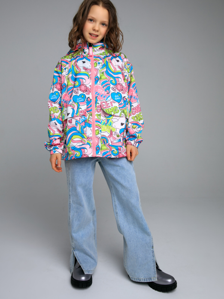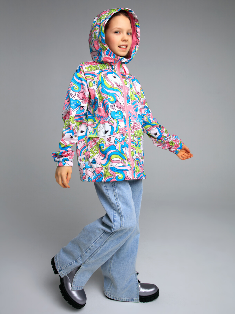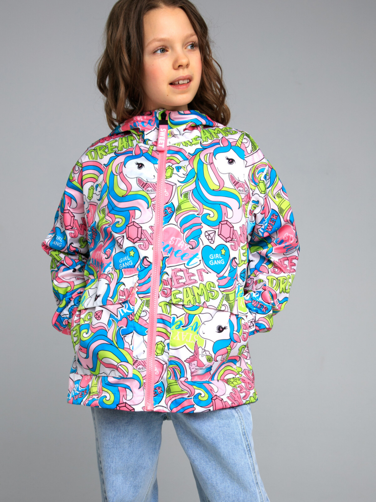 Куртка текстильная с полиуретановым покрытием для девочек (ветровка) разноцветный