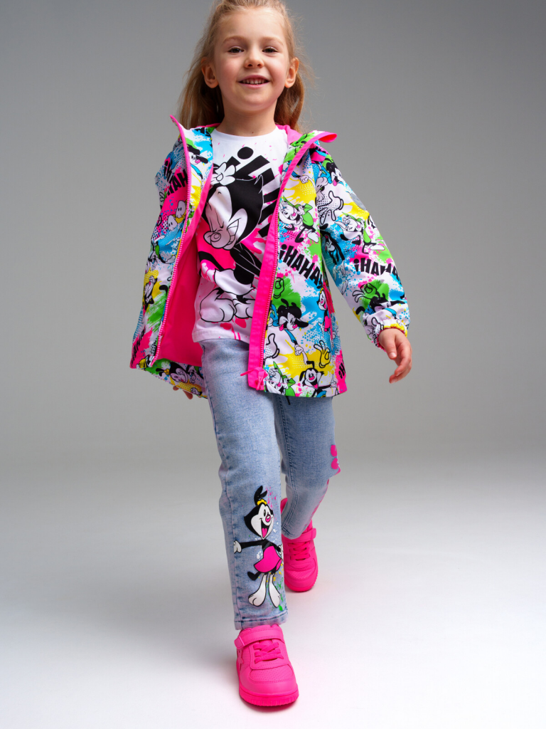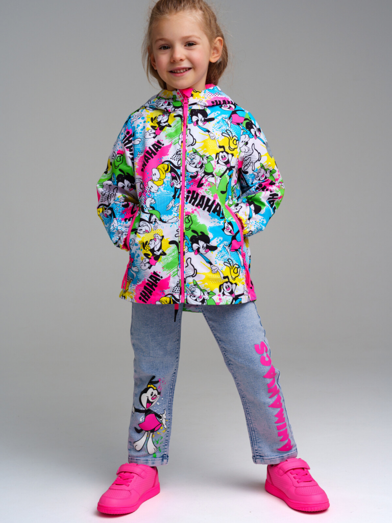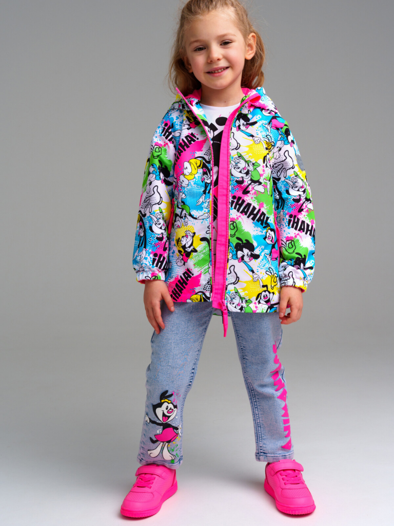 > Куртка текстильная с полиуретановым покрытием для девочек (ветровка) разноцветный