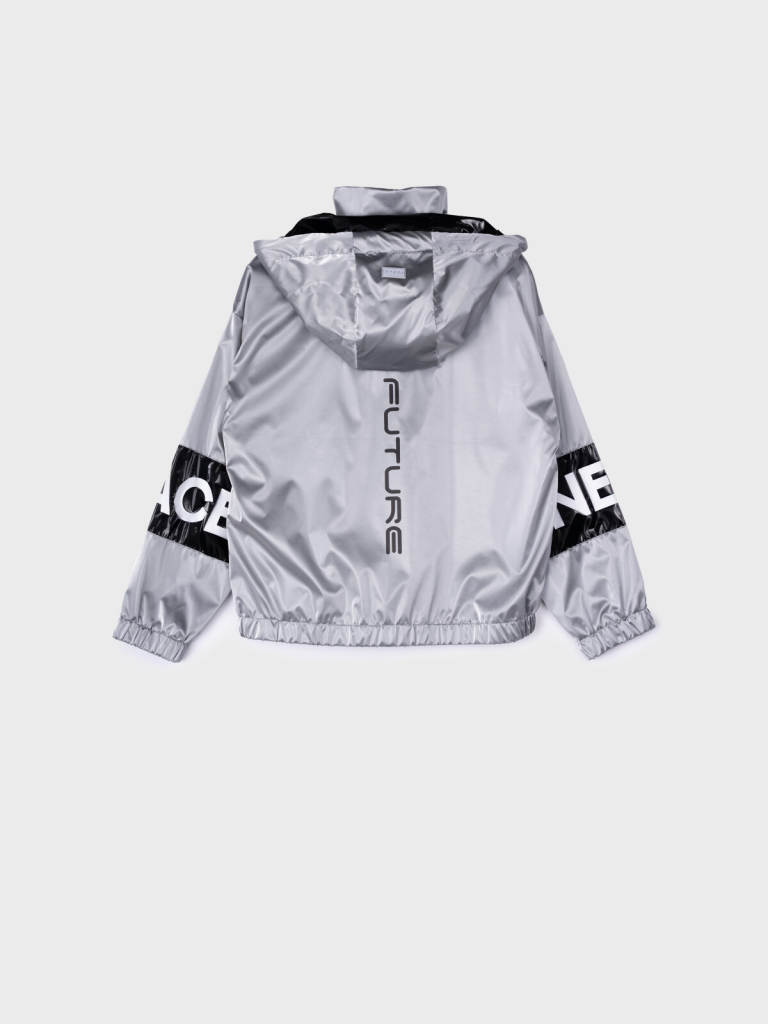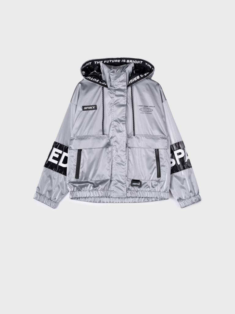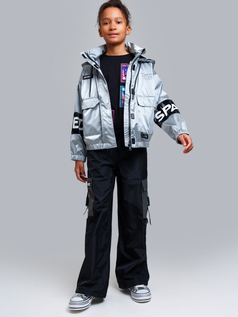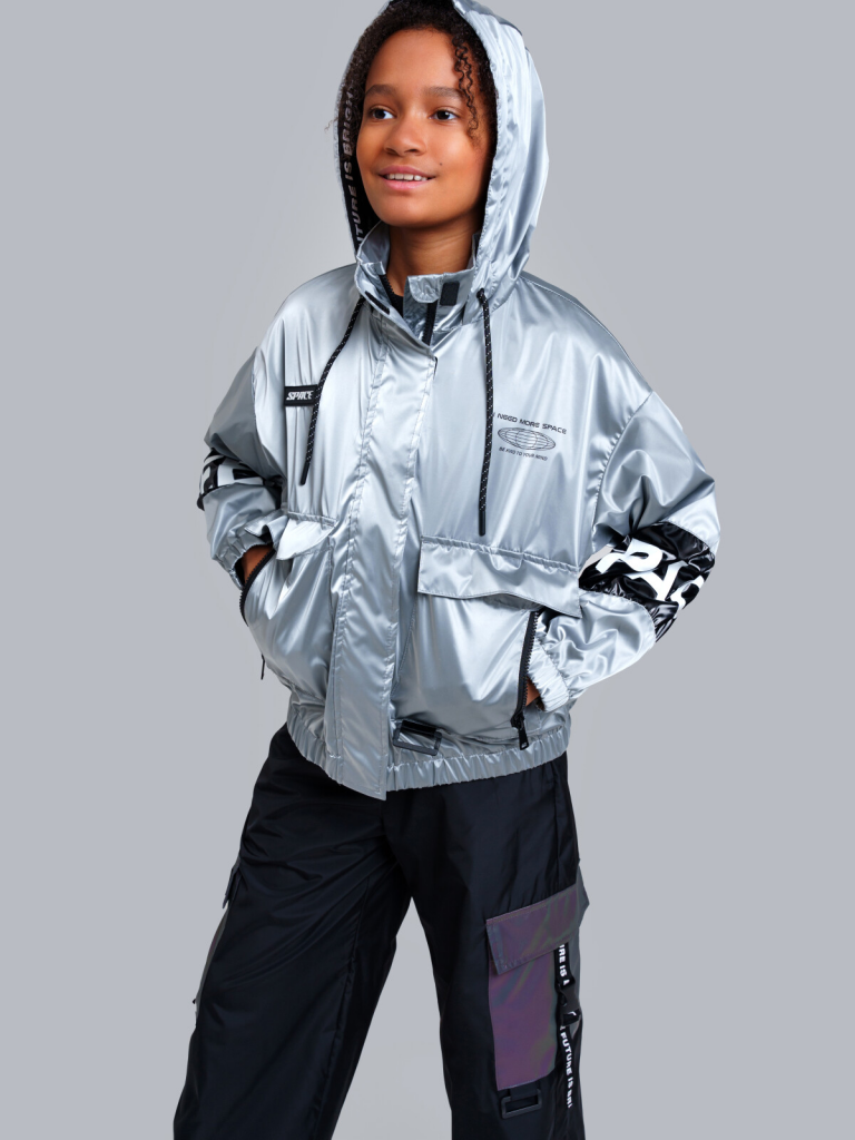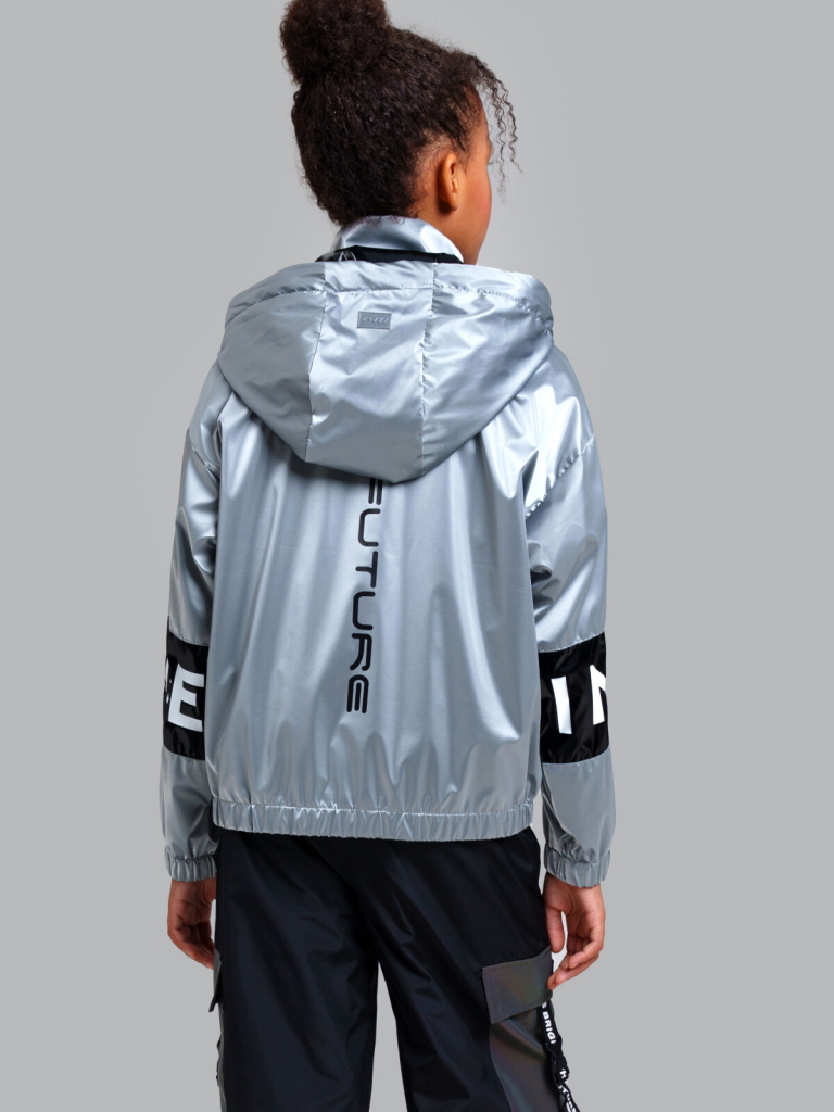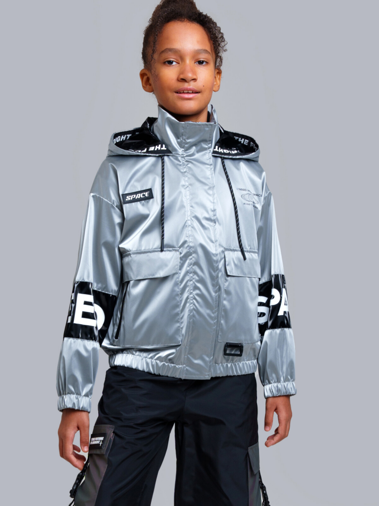 Куртка текстильная с полиуретановым покрытием для девочек (ветровка) серебряный,черный
