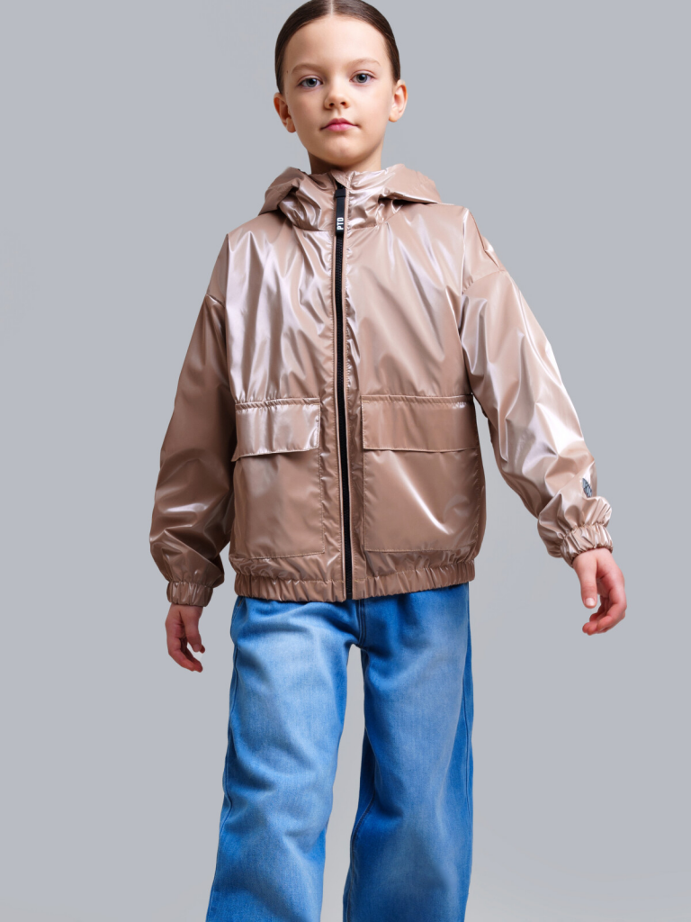 > Куртка текстильная с полиуретановым покрытием для девочек (ветровка) золотой