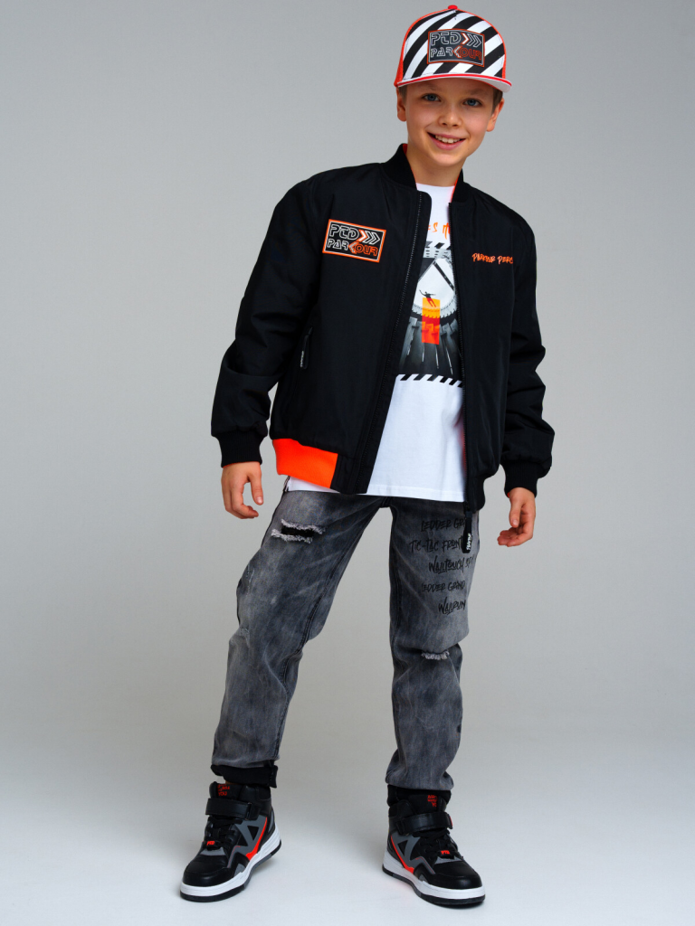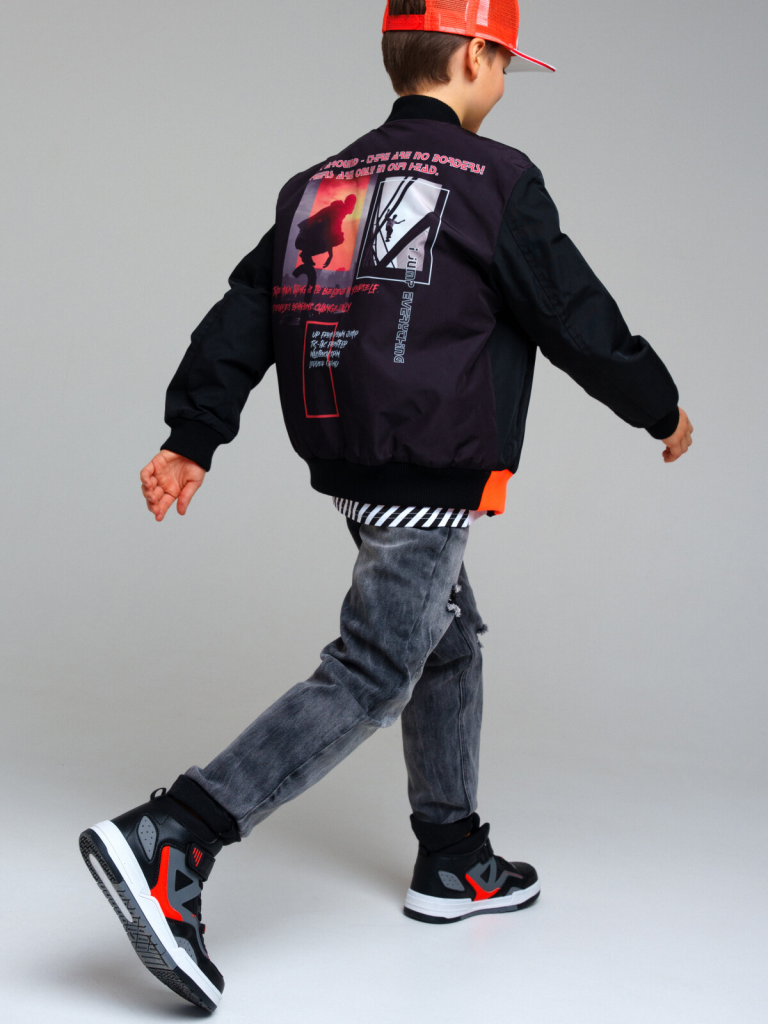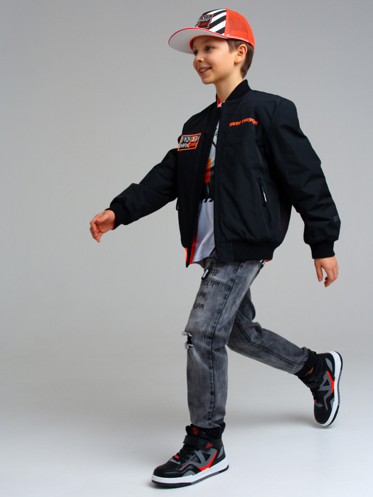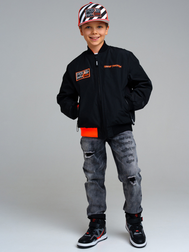 > Куртка текстильная с полиуретановым покрытием для мальчиков черный,оранжевый