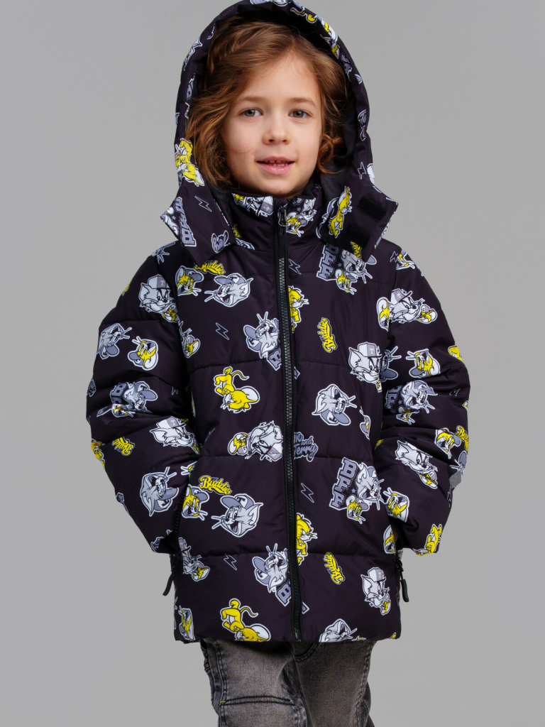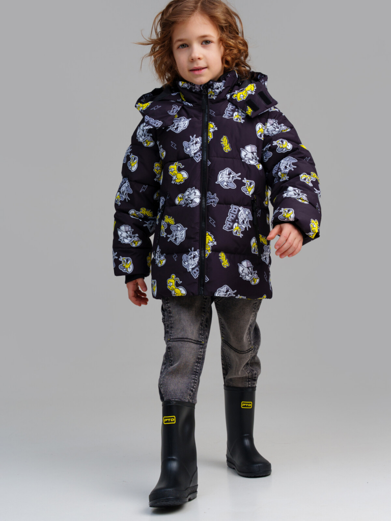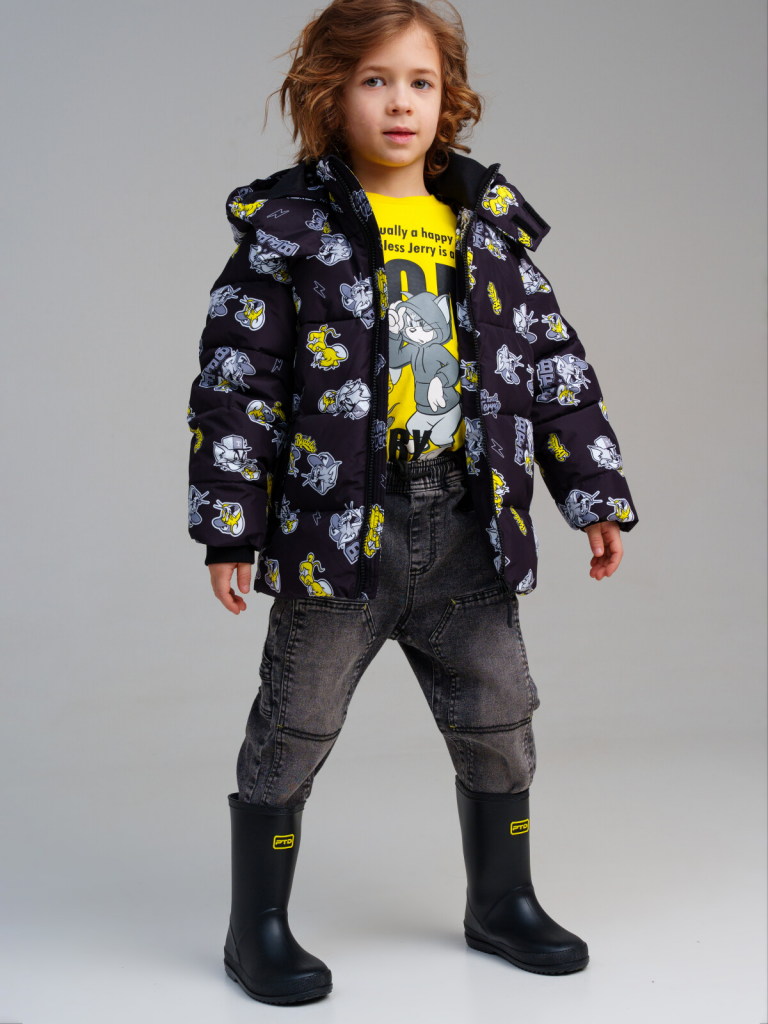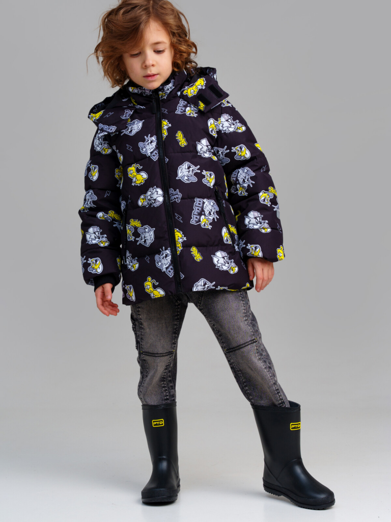 > Куртка текстильная с полиуретановым покрытием для мальчиков черный,жёлтый,белый