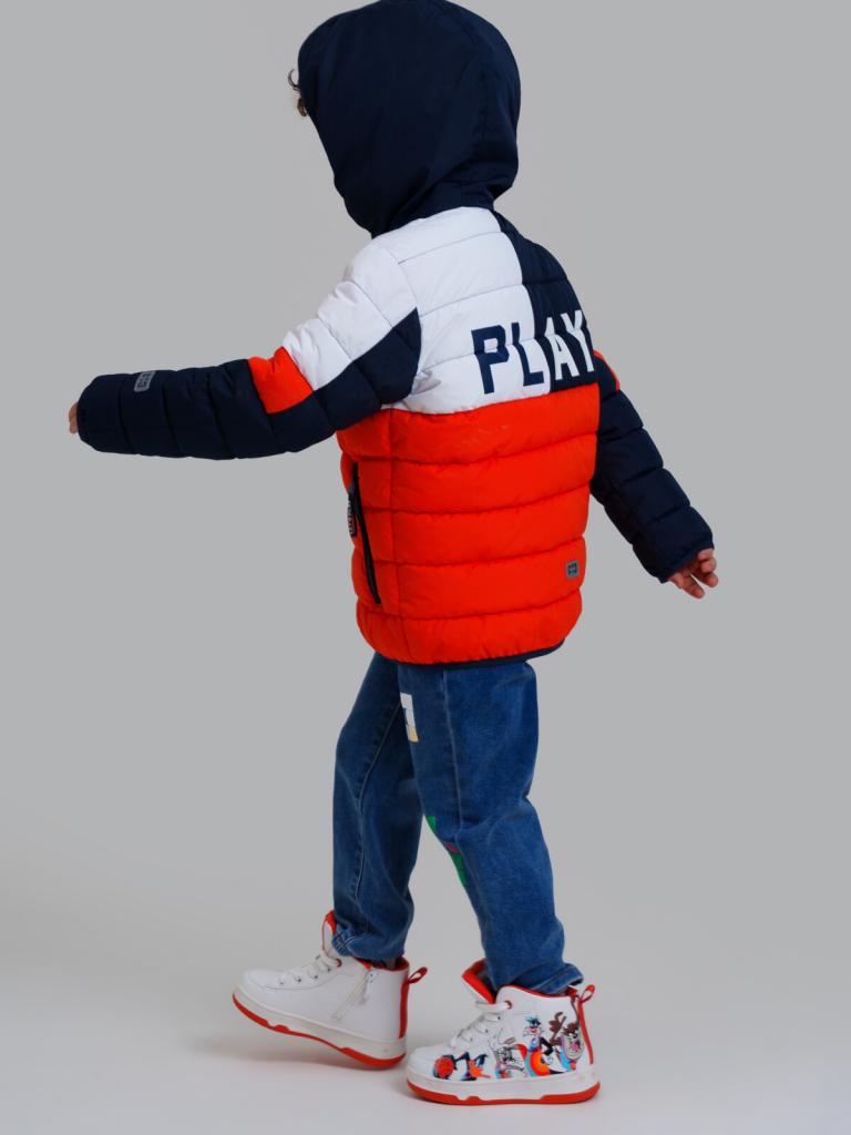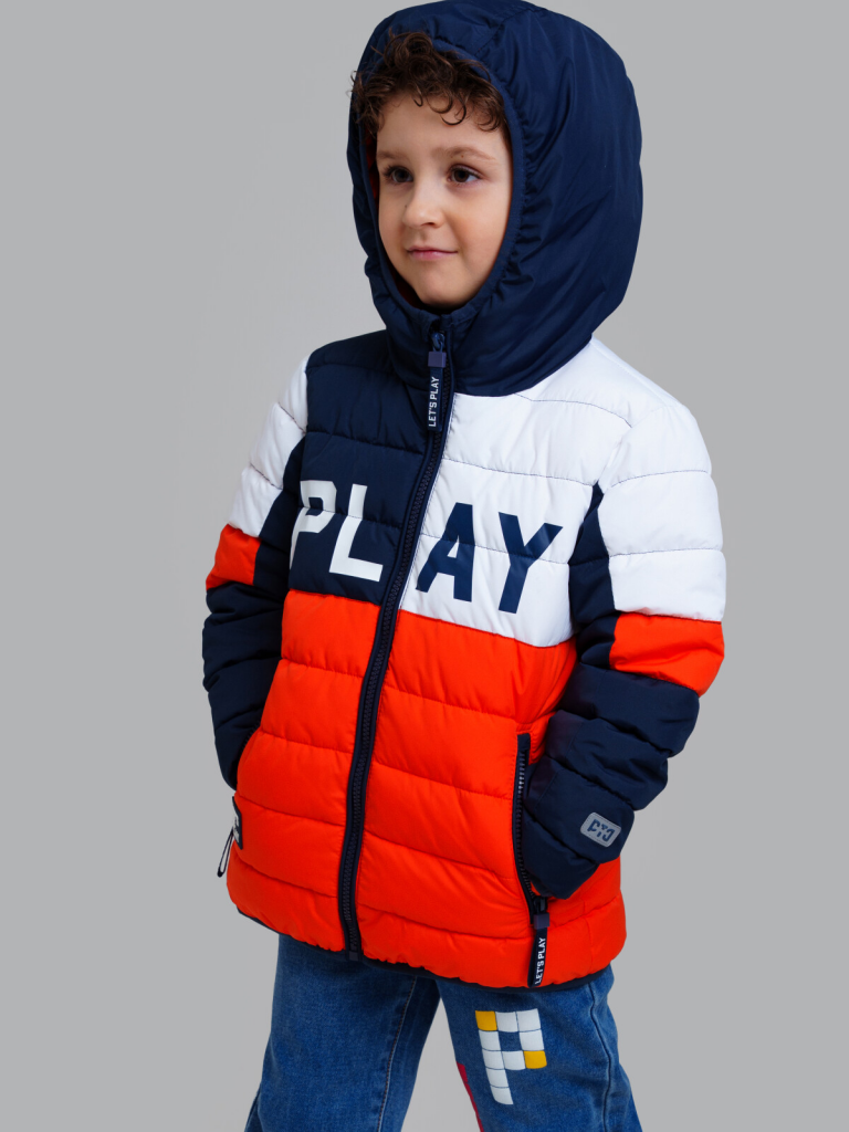 > Куртка текстильная с полиуретановым покрытием для мальчиков оранжевый,белый,тёмно-синий