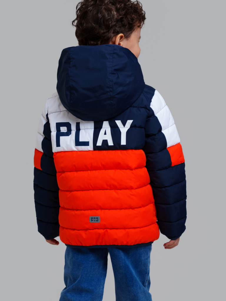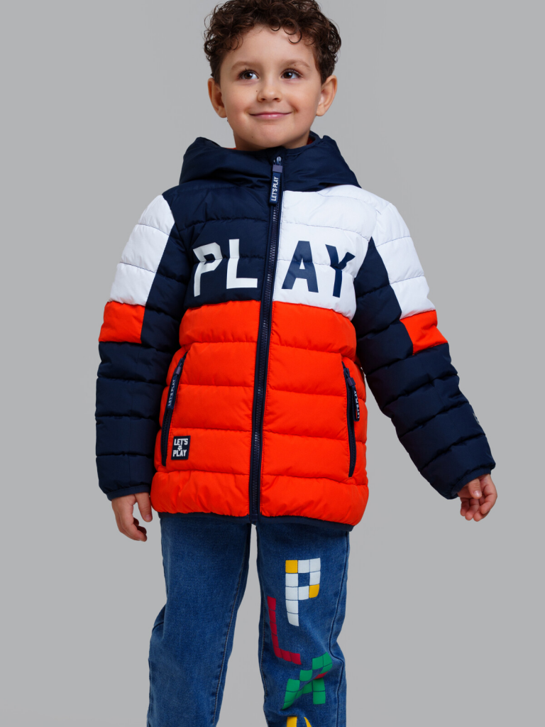 Куртка текстильная с полиуретановым покрытием для мальчиков оранжевый,белый,тёмно-синий