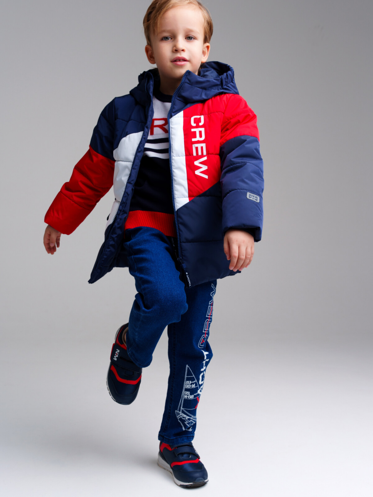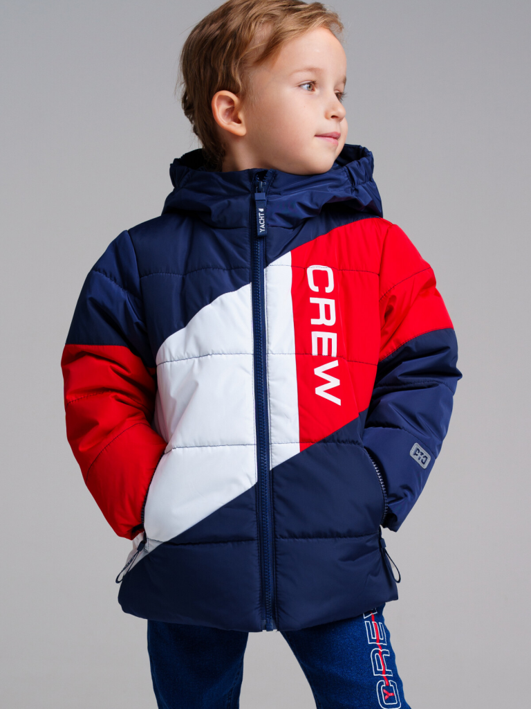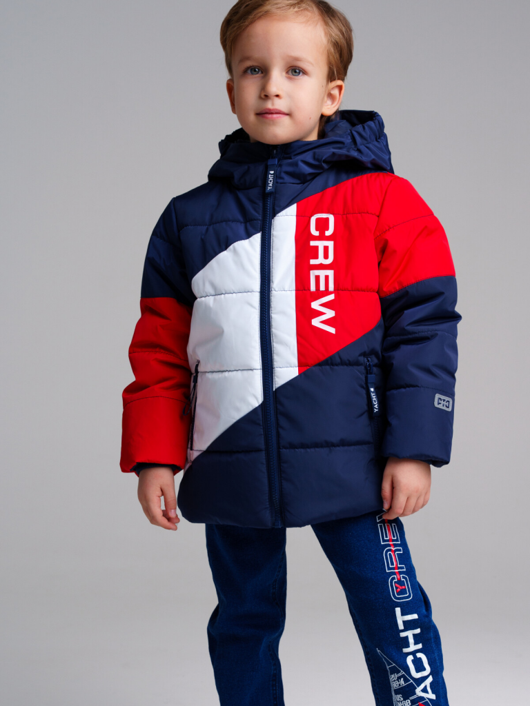 > Куртка текстильная с полиуретановым покрытием для мальчиков тёмно-синий,красный,белый