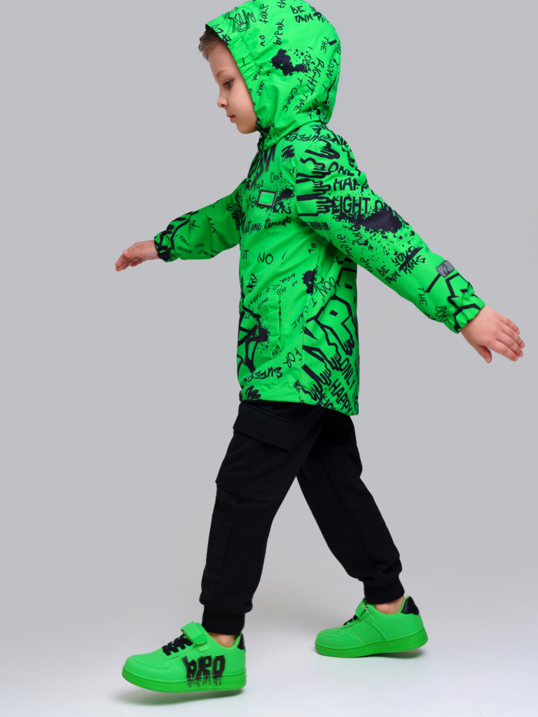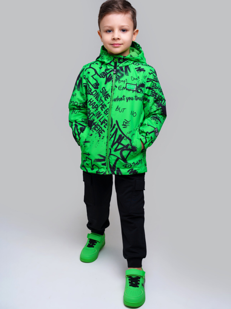 Куртка текстильная с полиуретановым покрытием для мальчиков (ветровка) светло-зеленый,черный