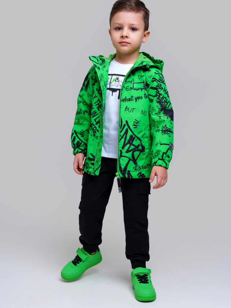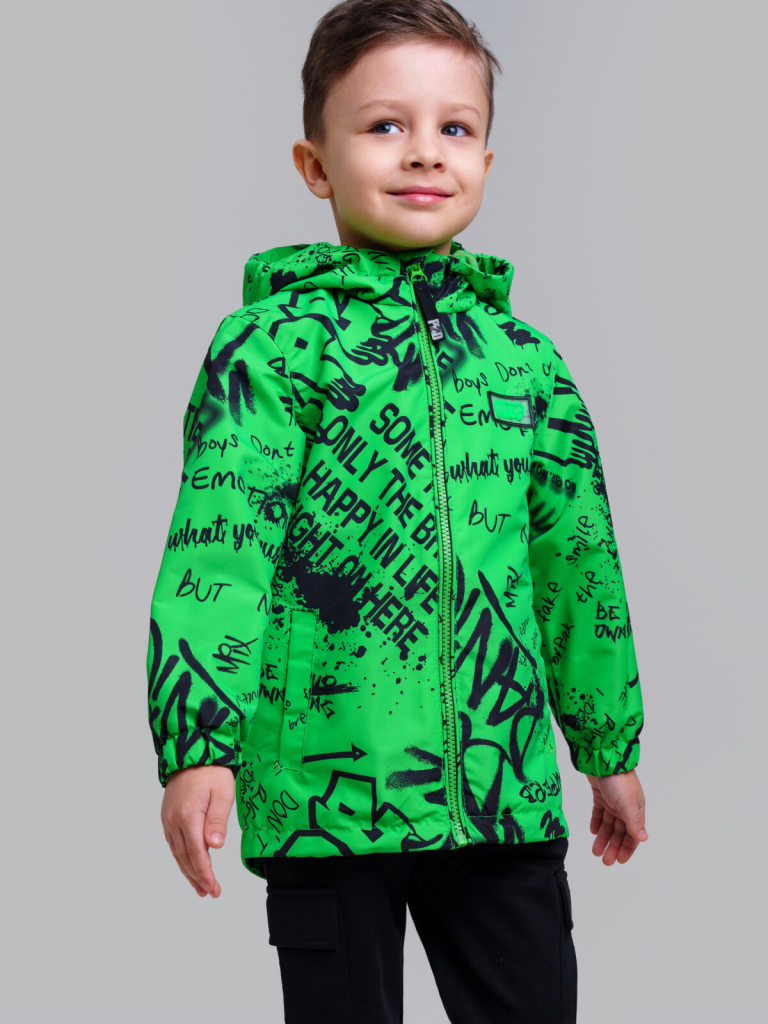 > Куртка текстильная с полиуретановым покрытием для мальчиков (ветровка) светло-зеленый,черный