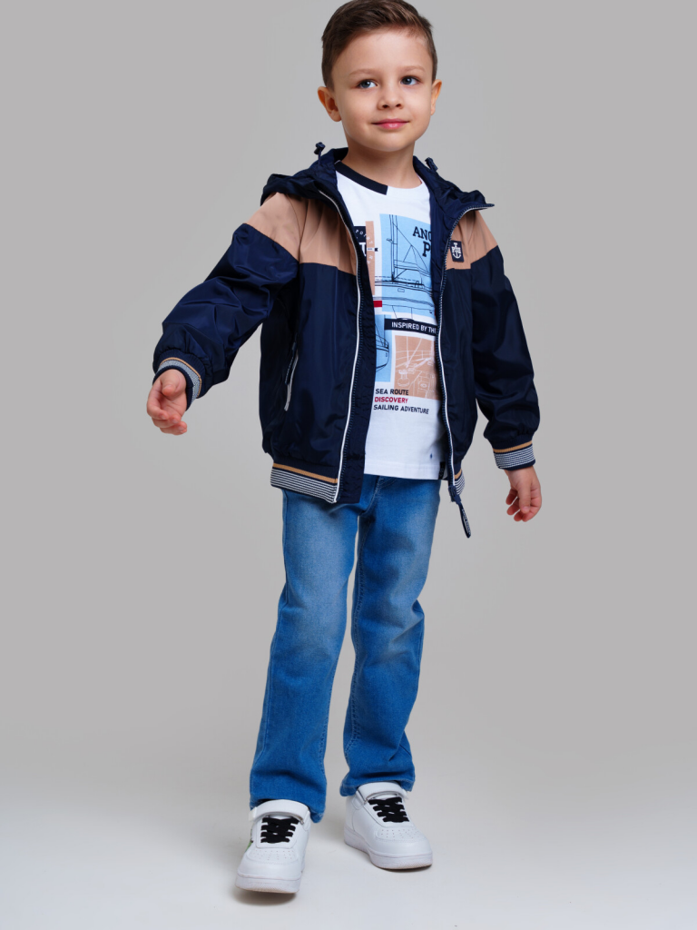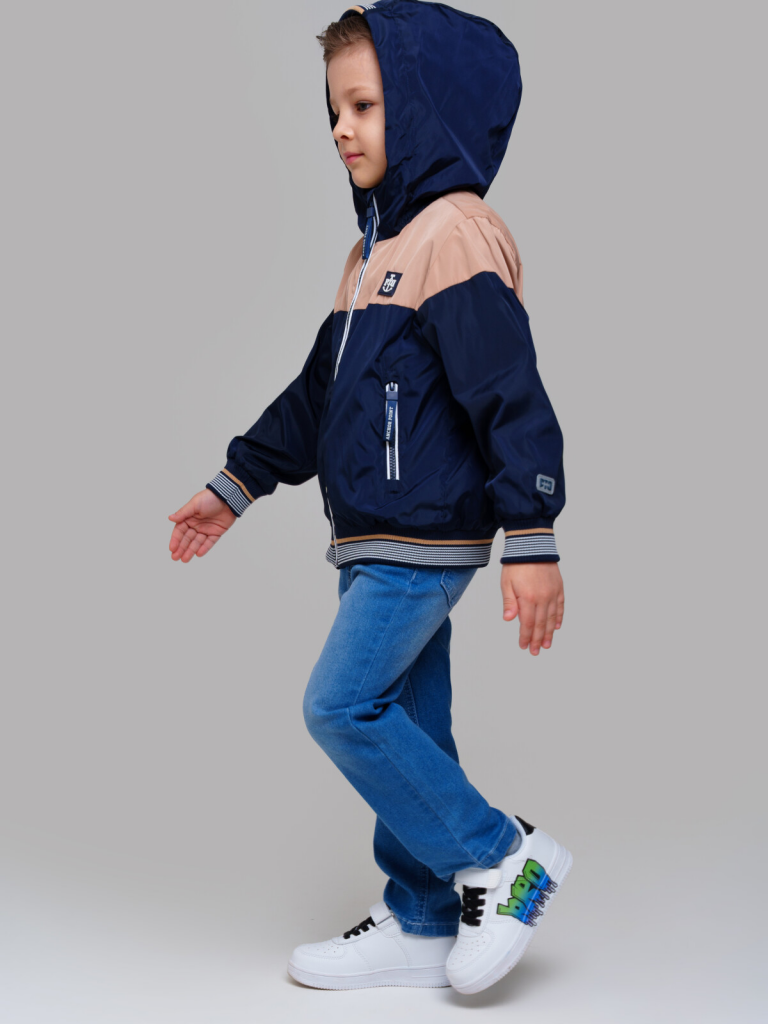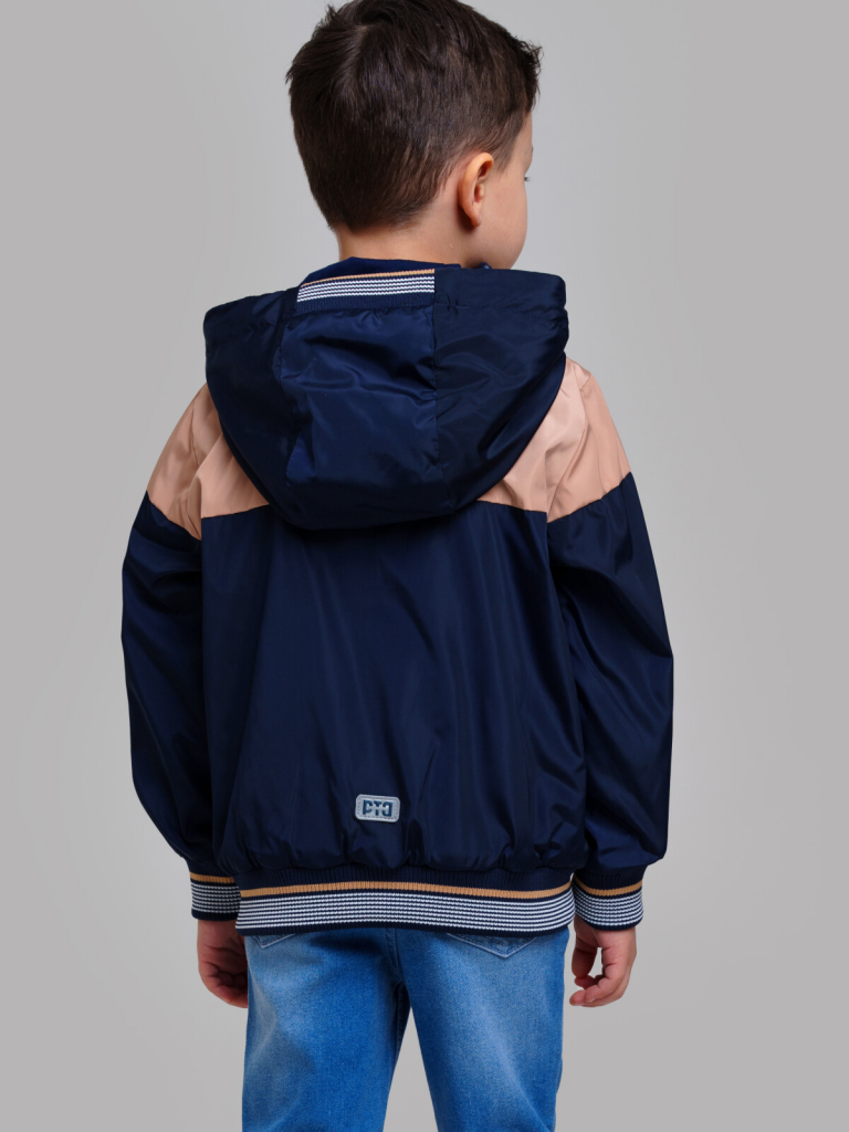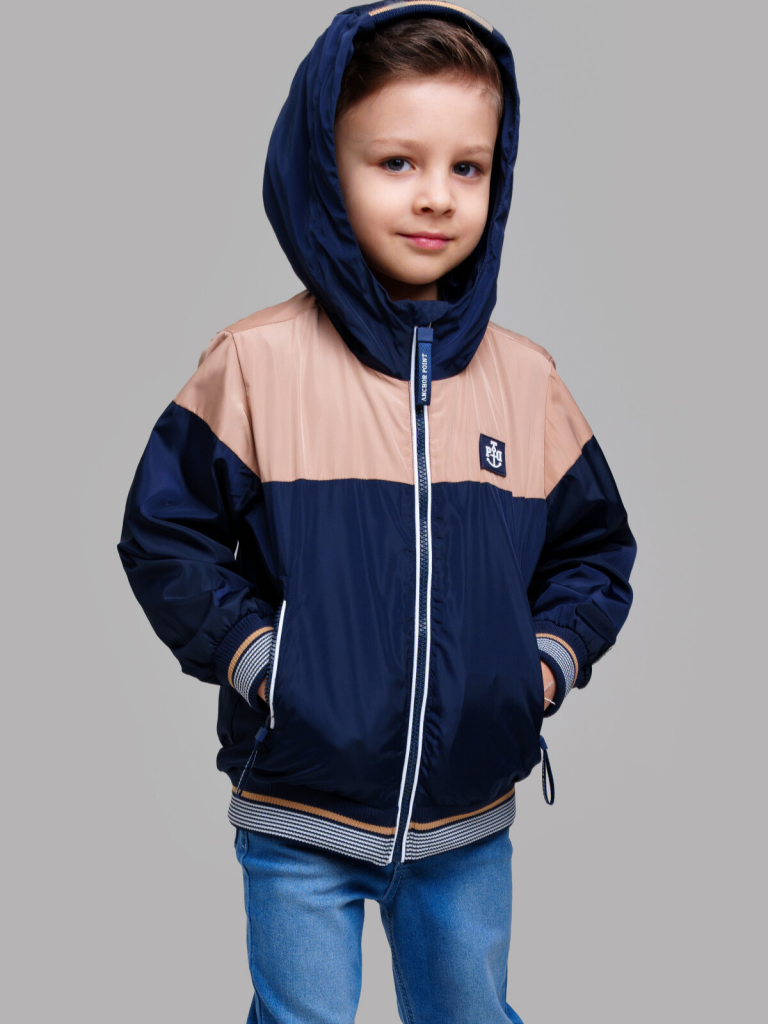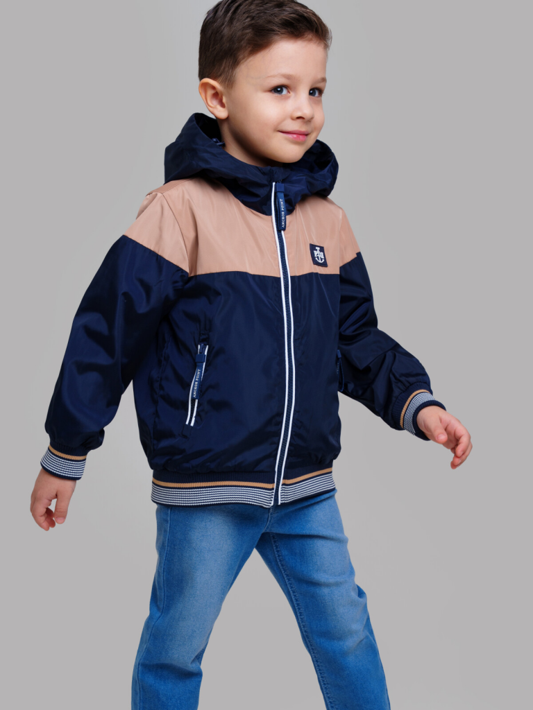 > Куртка текстильная с полиуретановым покрытием для мальчиков (ветровка) тёмно-синий,бежевый
