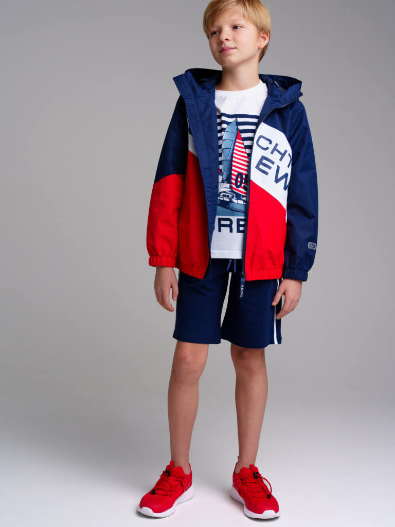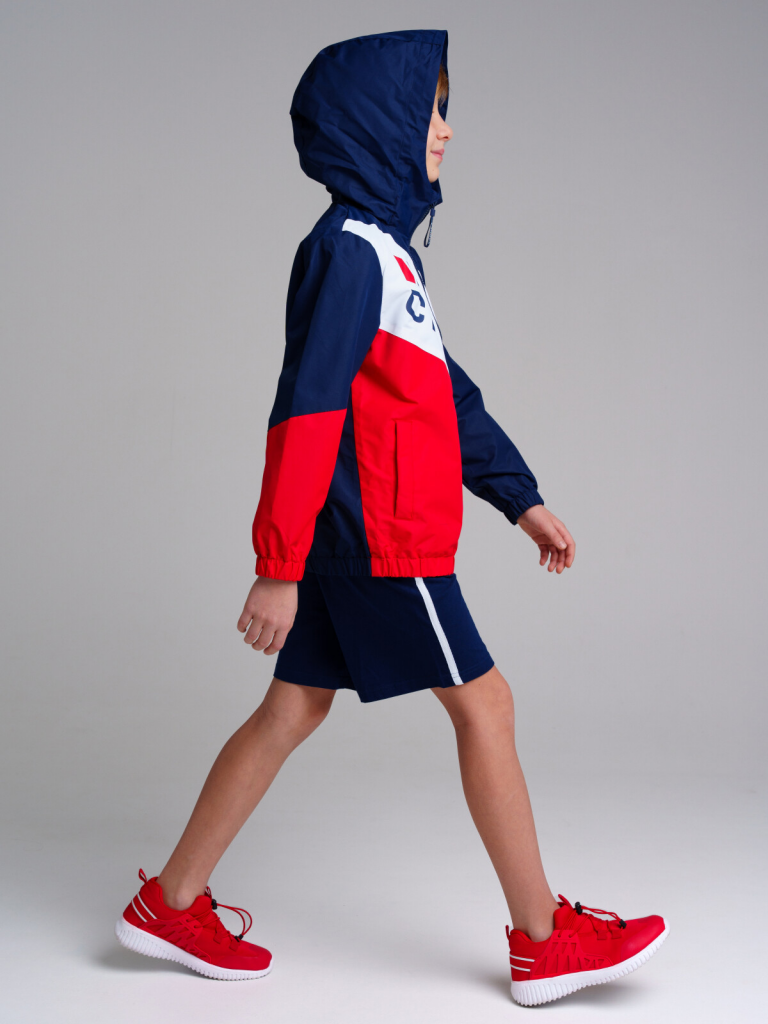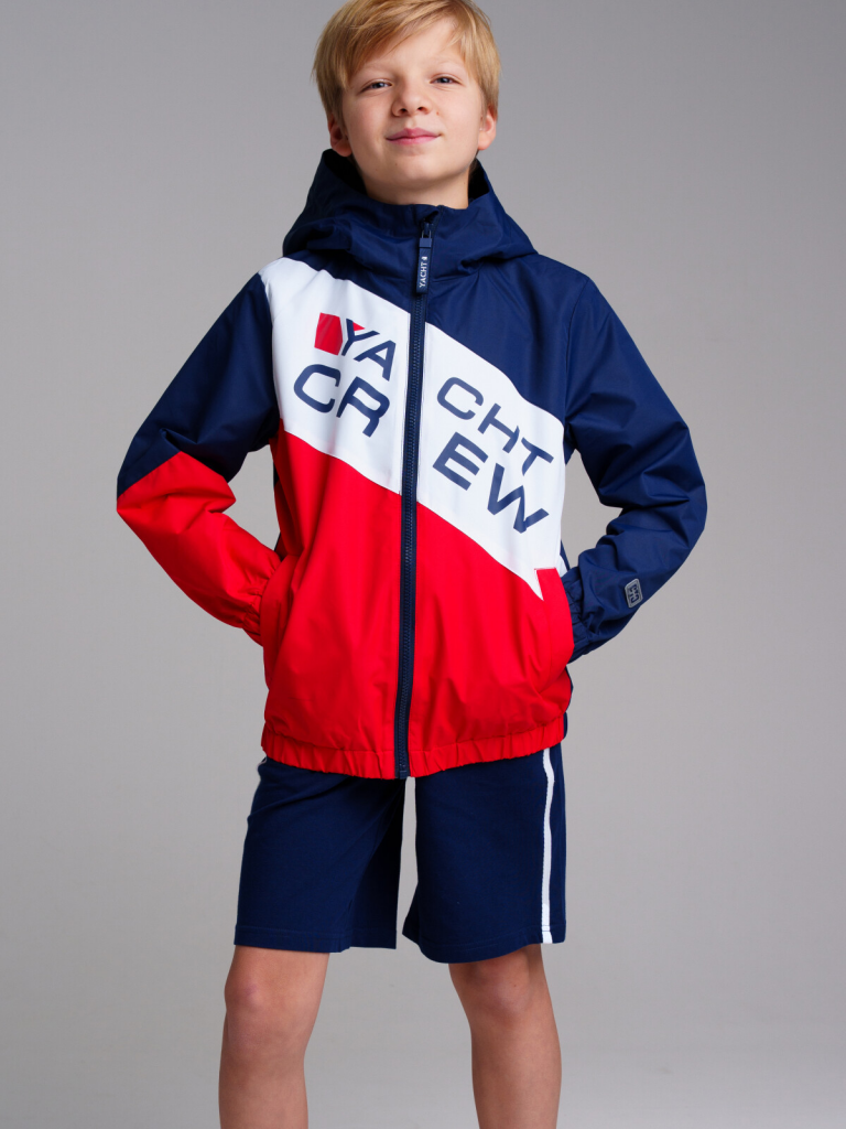 > Куртка текстильная с полиуретановым покрытием для мальчиков (ветровка) тёмно-синий,красный,белый